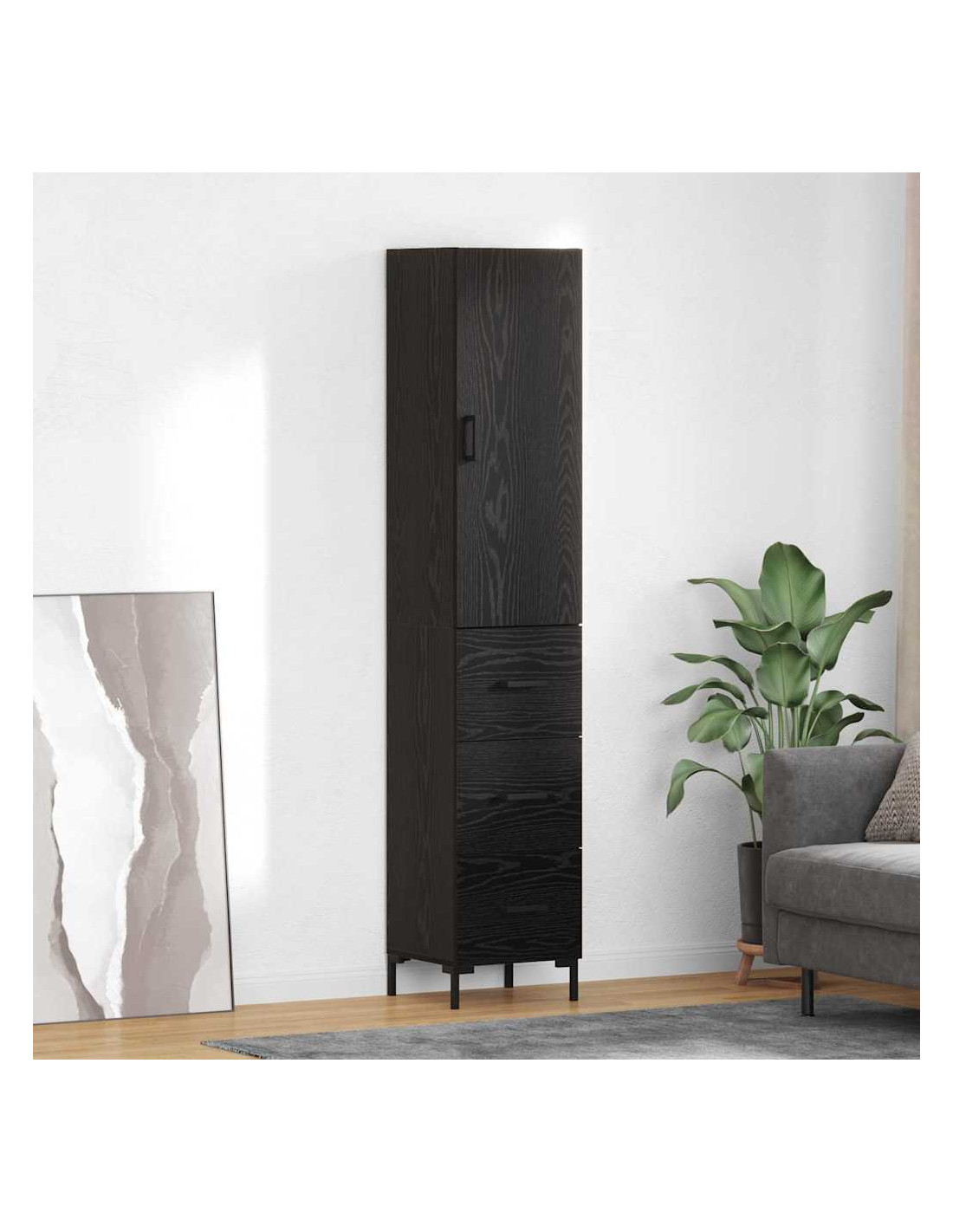 - Costruzione in Legno Ingegnerizzato: Questo highboard è realizzato in legno ingegnerizzato resistente, che gli dà un aspetto chic e una struttura solida. È scelto per la sua lunga durata e per mantenere il suo stile nel tempo, rendendolo un'aggiunta duratura per la tua casa.