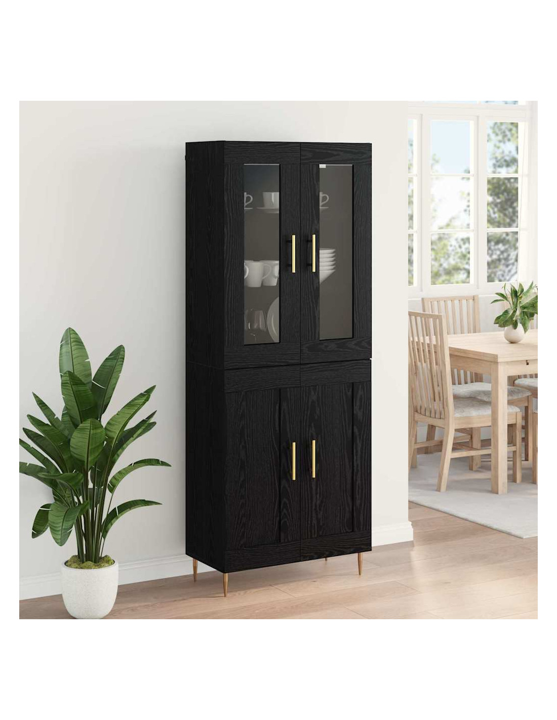 - Usi Consigliati: Questo highboard è perfetto per qualsiasi soggiorno, ideale per esposizioni di collezioni o per tenere in ordine gli oggetti quotidiani. La sua struttura alta e snella lo rende perfetto per sfruttare lo spazio verticale, utile sia per appartamenti compatti che per case spaziose.