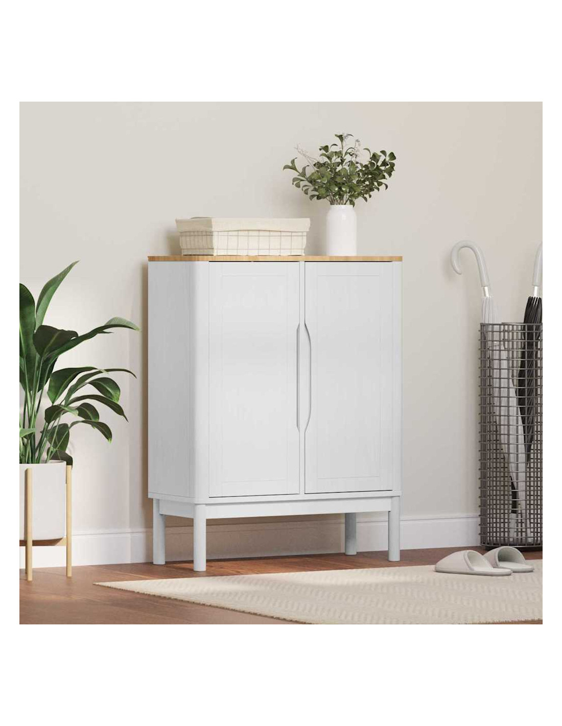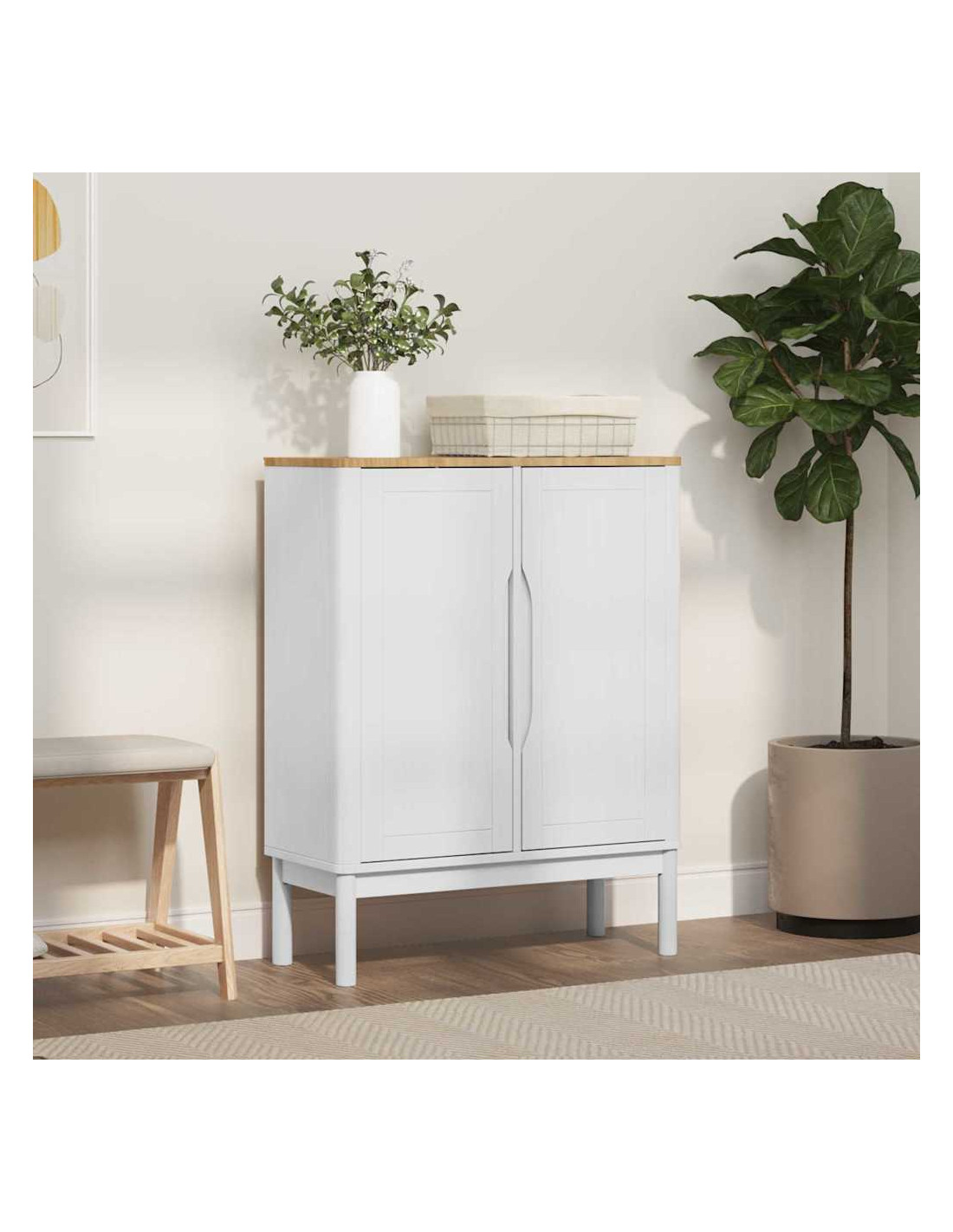 Questa credenza è un must in ogni living elegante, con tanto spazio di stoccaggio e un design robusto. Realizzata principalmente in legno massello di pino, combina stile e funzionalità. Perfetta per migliorare l'aspetto e lo stoccaggio in camera da letto o soggiorno, il suo telaio elegante si adatta a vari stili di decorazione, aggiungendo un tocco di classe minimalista. Si integra facilmente in spazi diversi grazie al suo design semplice e moderno.