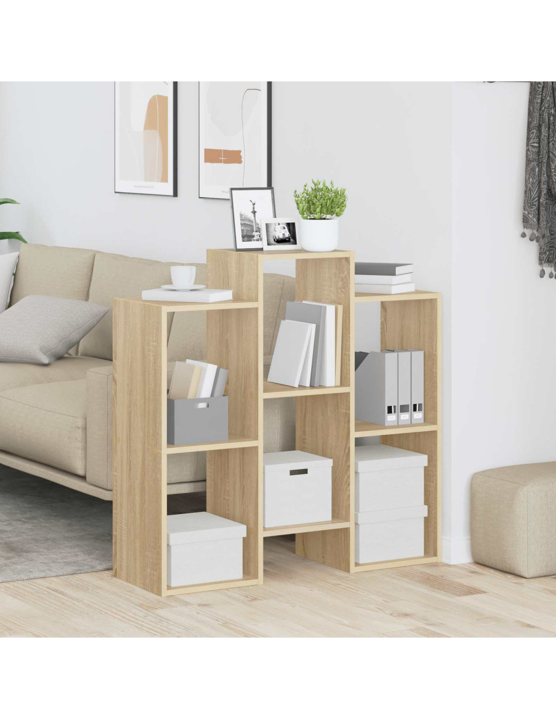 - Shelf system dim integrato Progettato con ripiani fissi, questo sideboard è versatile per organizzare diversi oggetti, da libri a decorazioni. La semplice soluzione di scaffalatura utilizza al meglio lo spazio, rendendolo ideale per chi cerca un soggiorno ordinato.