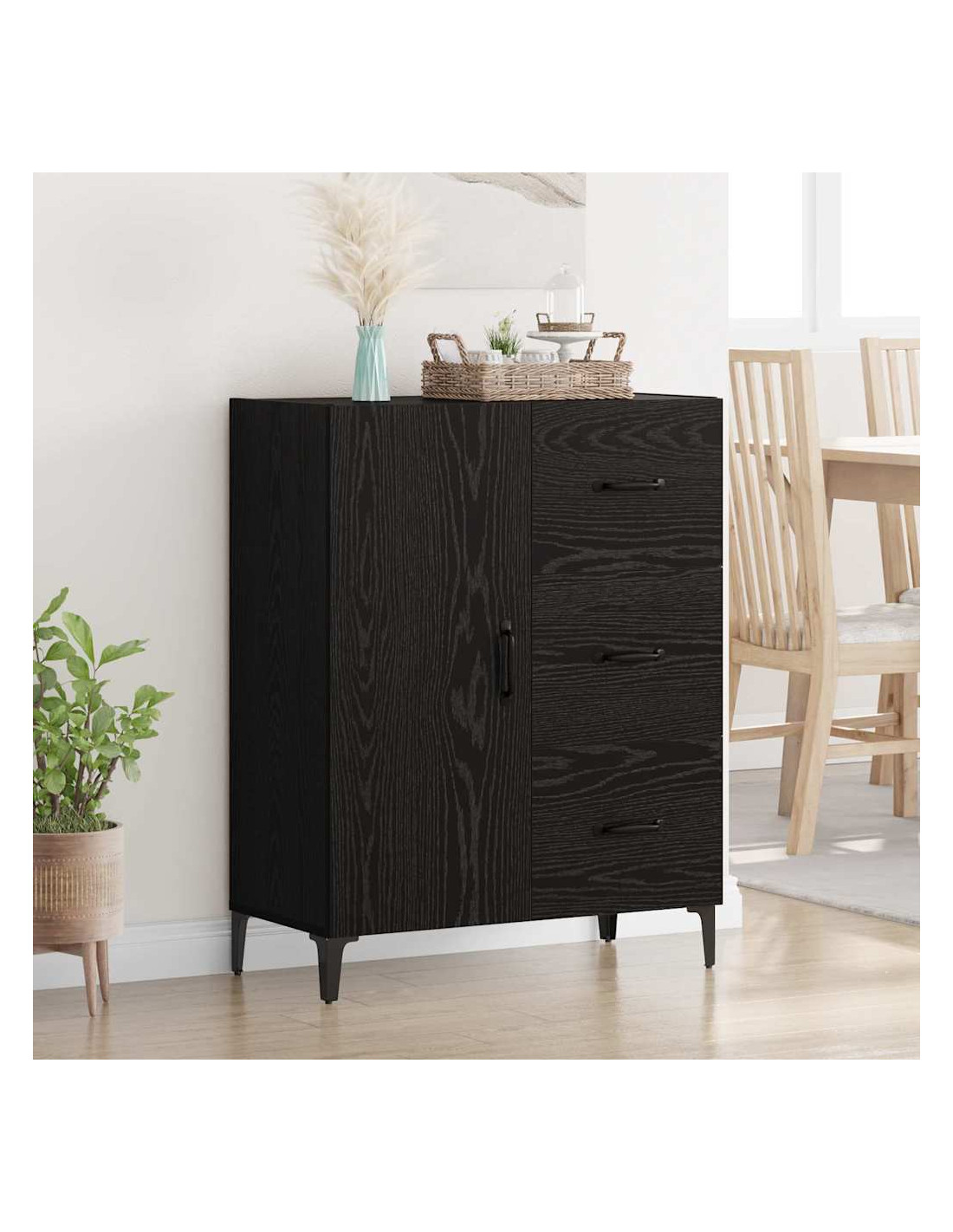 Questa credenza in legno ingegnerizzato è un modo elegante per risolvere i problemi di stoccaggio, con un design moderno che la rende perfetta per il soggiorno o la sala da pranzo. La forma rettangolare e le linee pulite fanno di questo pezzo un must-have, semplice ma pratico. Le sue tonalità naturali creano un’atmosfera serena, adattandosi a diversi stili d'interni, un perfetto mix di funzionalità e stile.