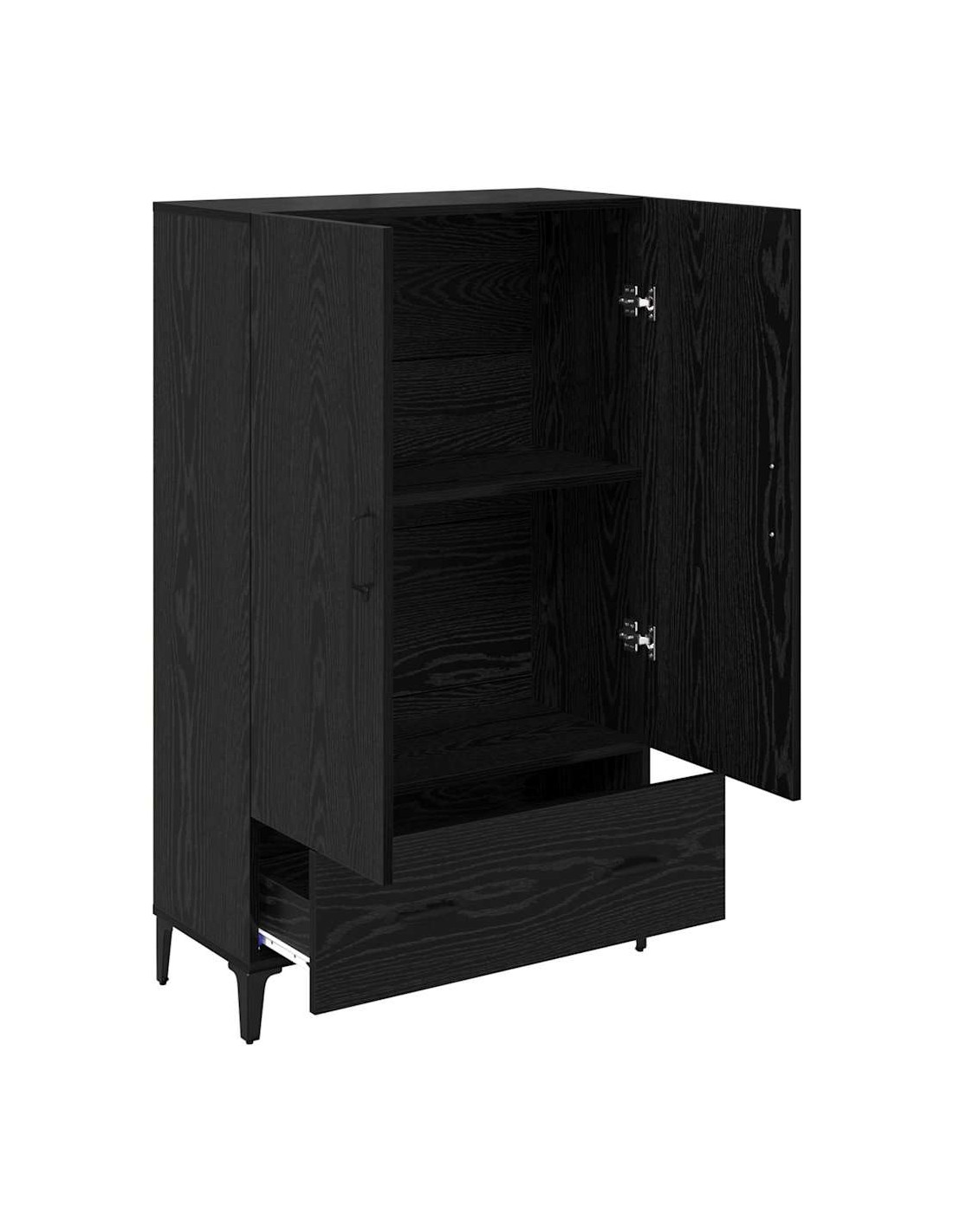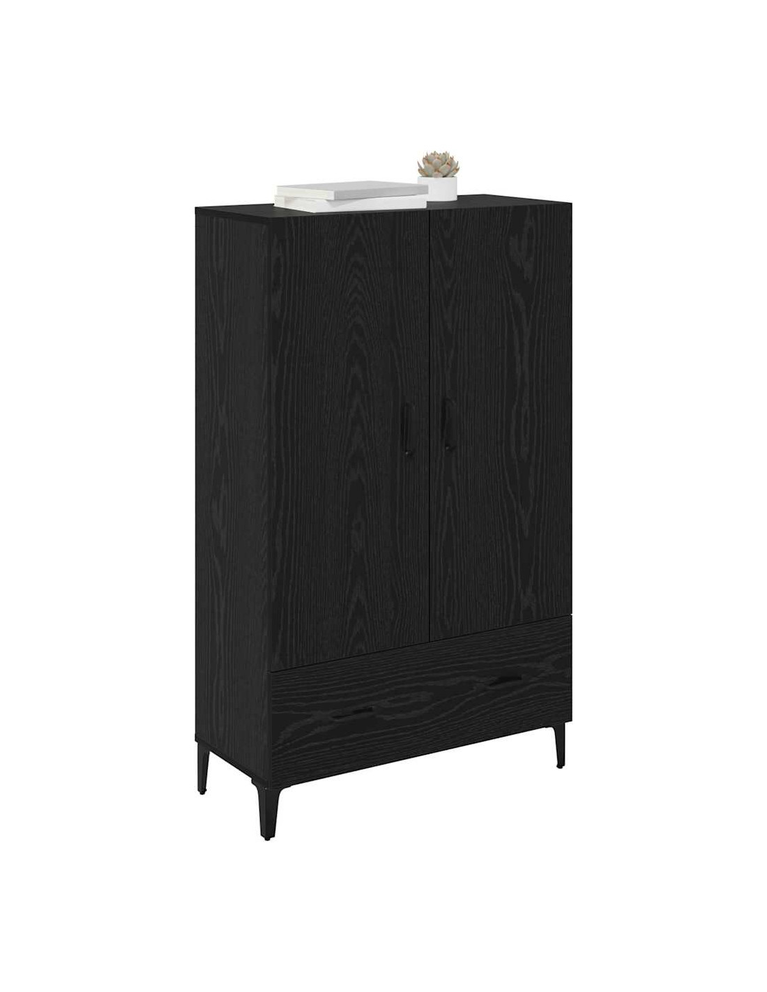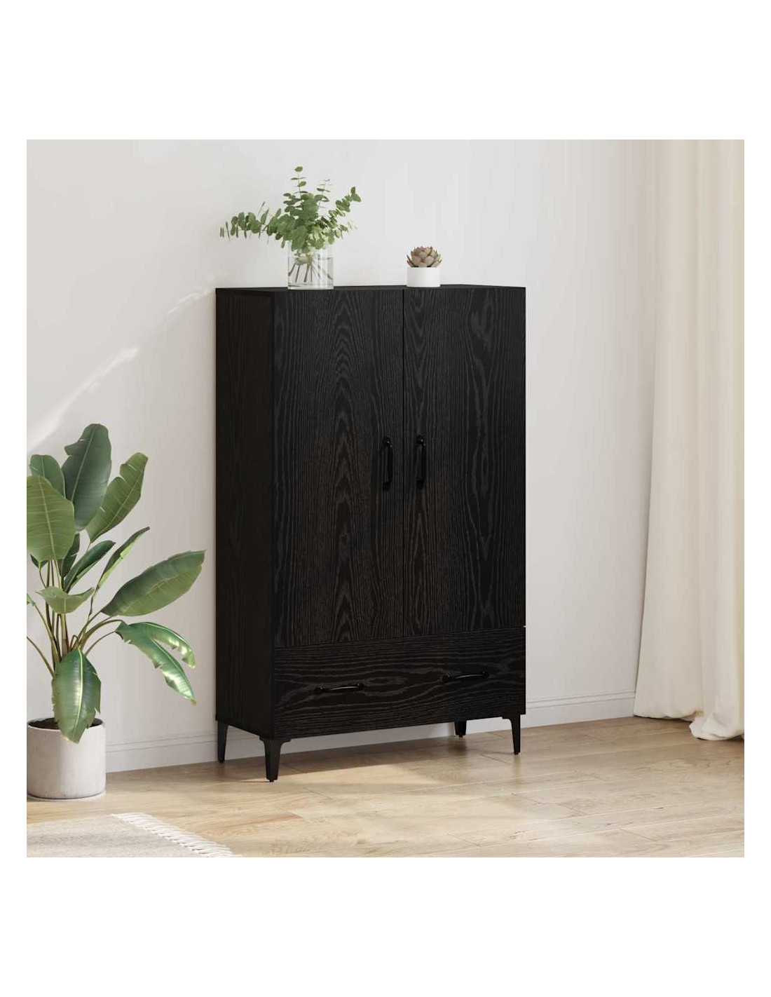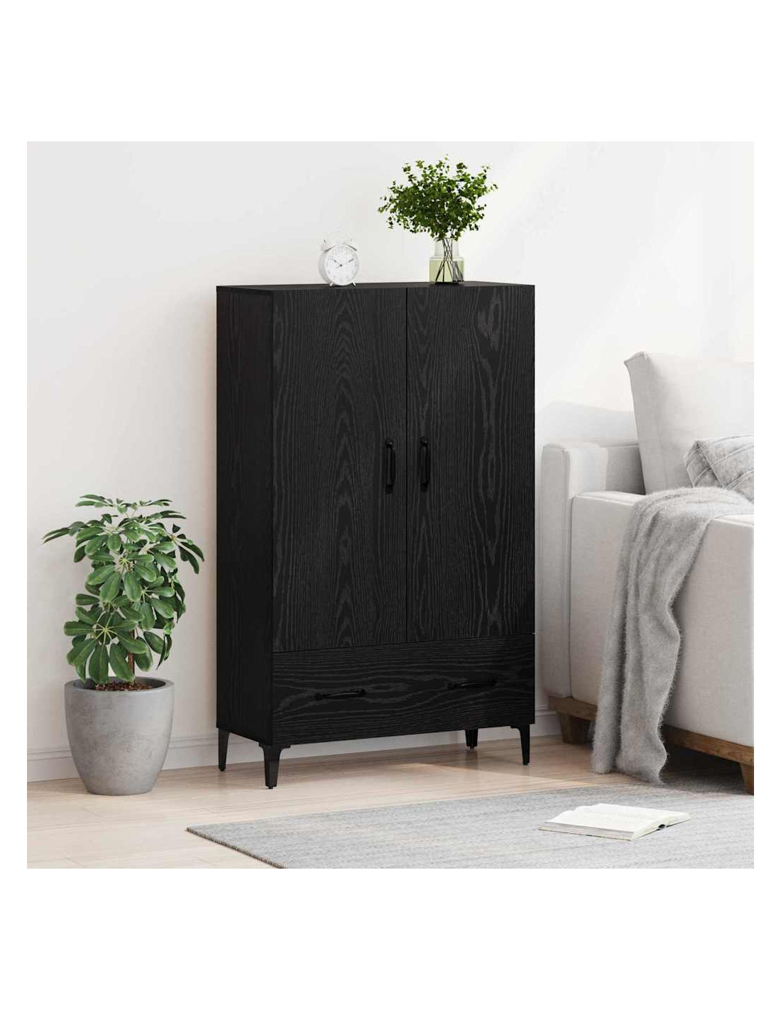 - Stile Moderno L'alto mobile ha un design moderno, caratterizzato da linee pulite e decorazioni minimali. La finitura nera opaca delle maniglie e delle gambe si abbina benissimo al telaio in legno ingegnerizzato, rendendolo una scelta eccellente per interni contemporanei.