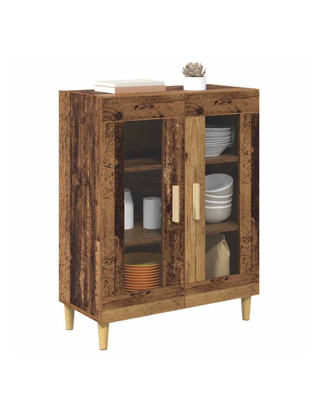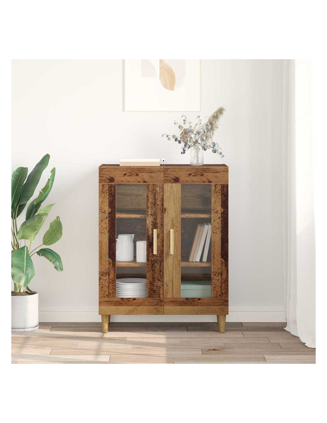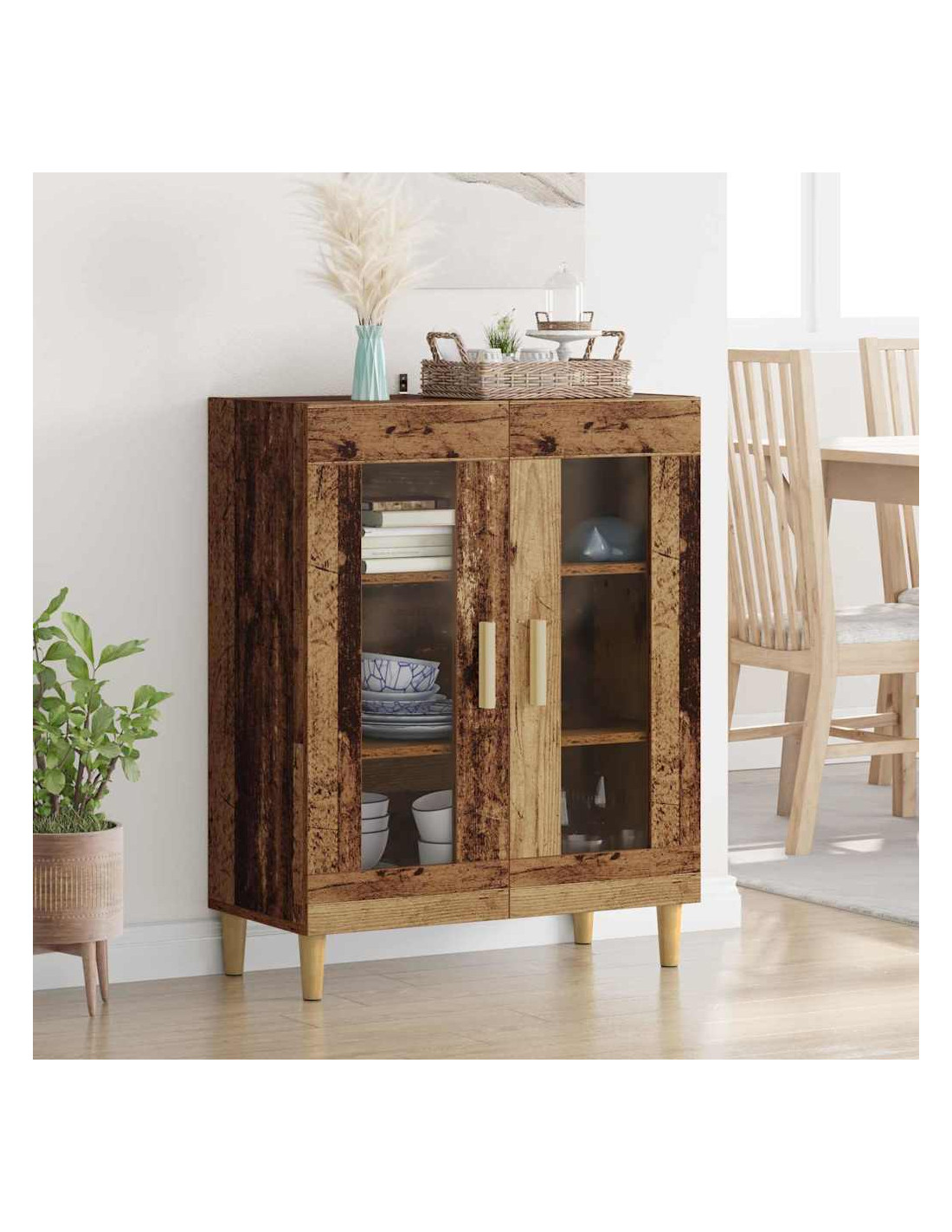 - Composizione in Legno Ingegnerizzato: Costruito in legno ingegnerizzato di alta qualità, il sideboard è stabile e durevole, resistente a deformazioni e usura. Questo materiale è noto per la sua finitura uniforme e la resistenza all'umidità, garantendo che il sideboard rimanga bello e funzionale nel tempo.