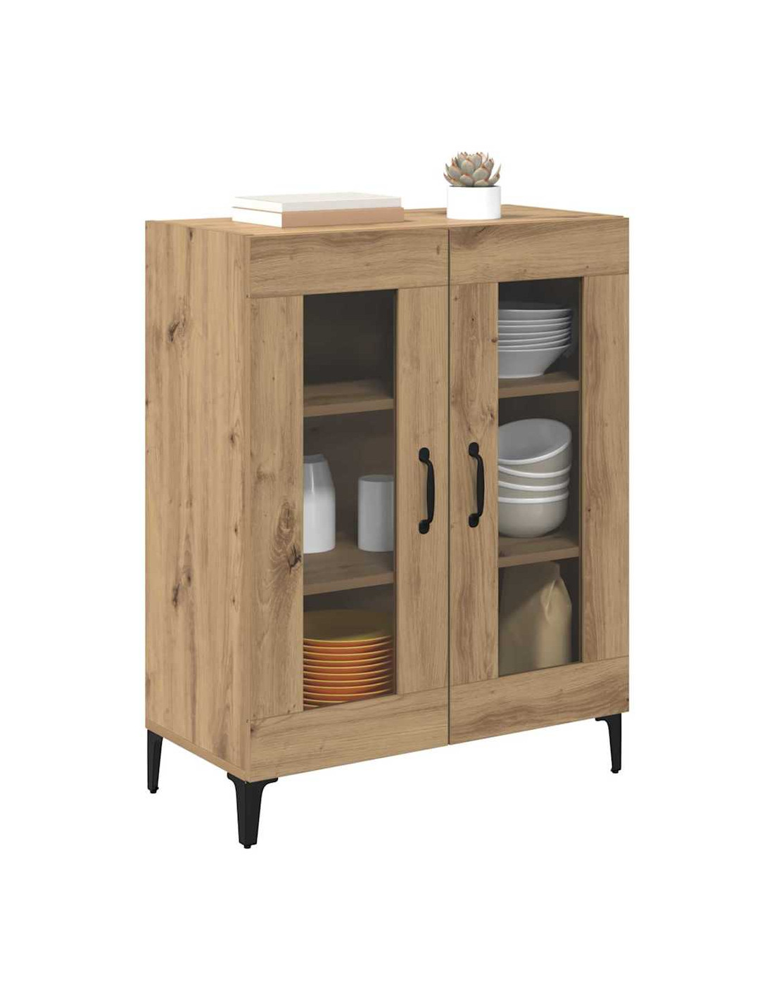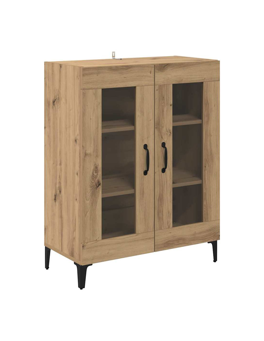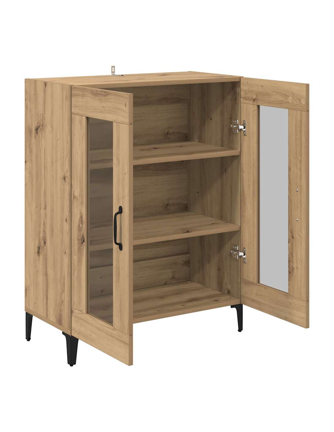 - Caratteristiche / Funzione / Design: Con tanto spazio per riporre, questo mobile tiene tutto in ordine. Le maniglie ad arco nere opache contrastano bene con il vetro, dando un look elegante. Le gambe a freccia danno un solido supporto e migliorano il design.