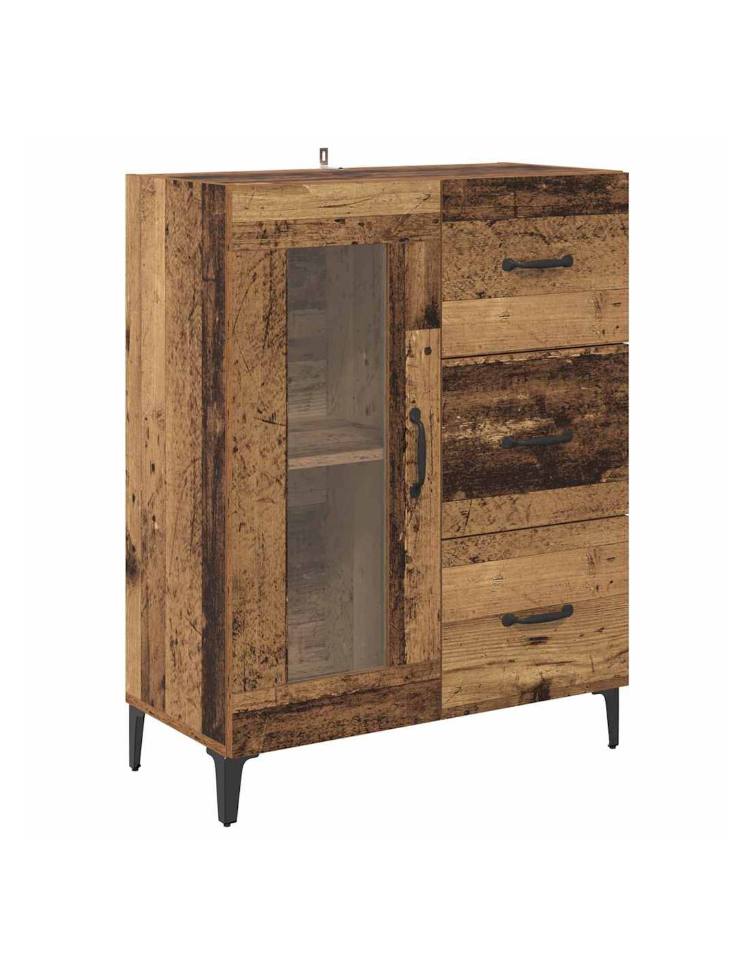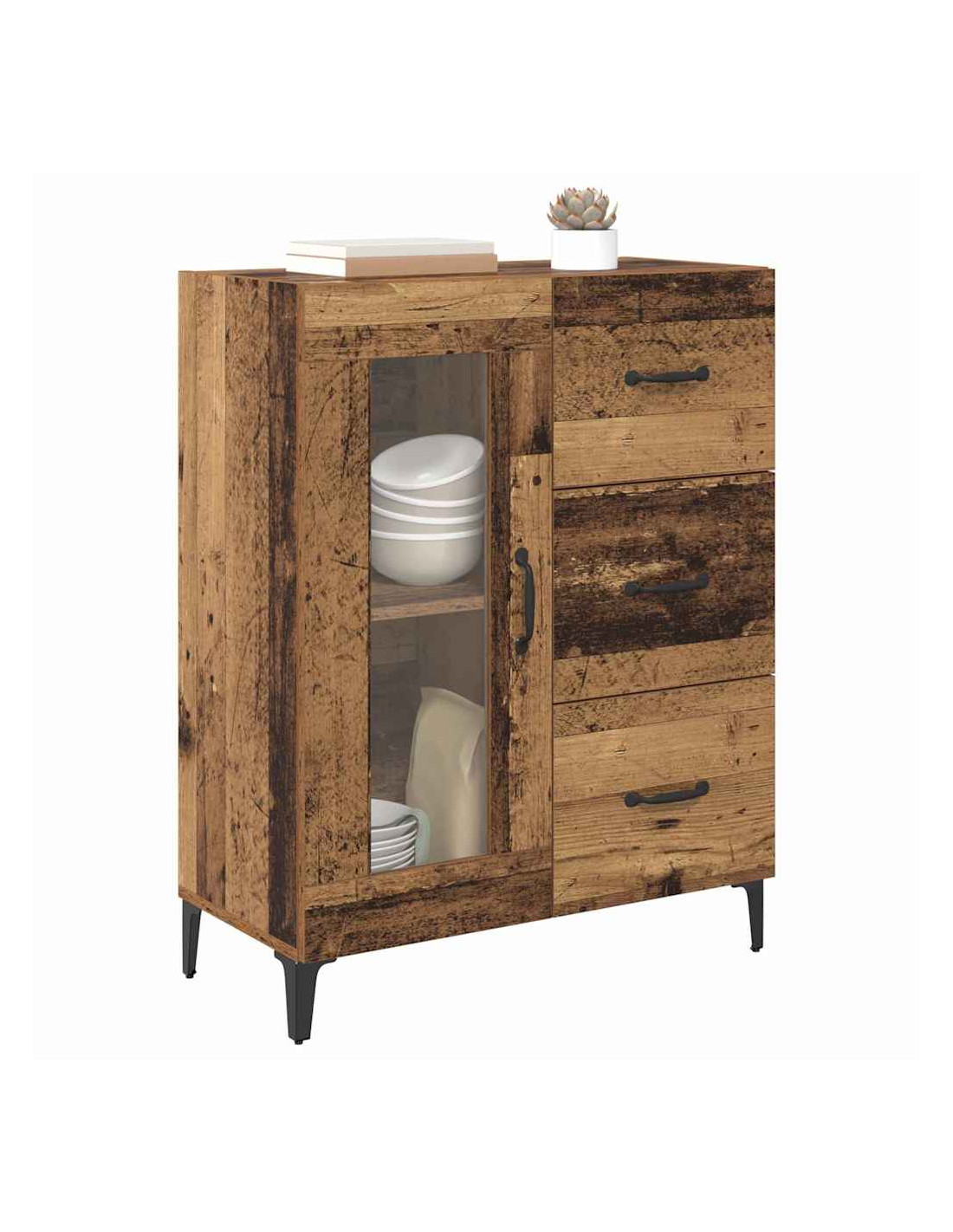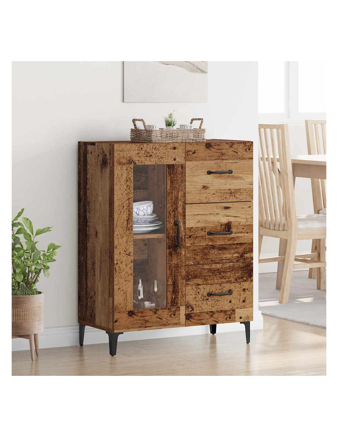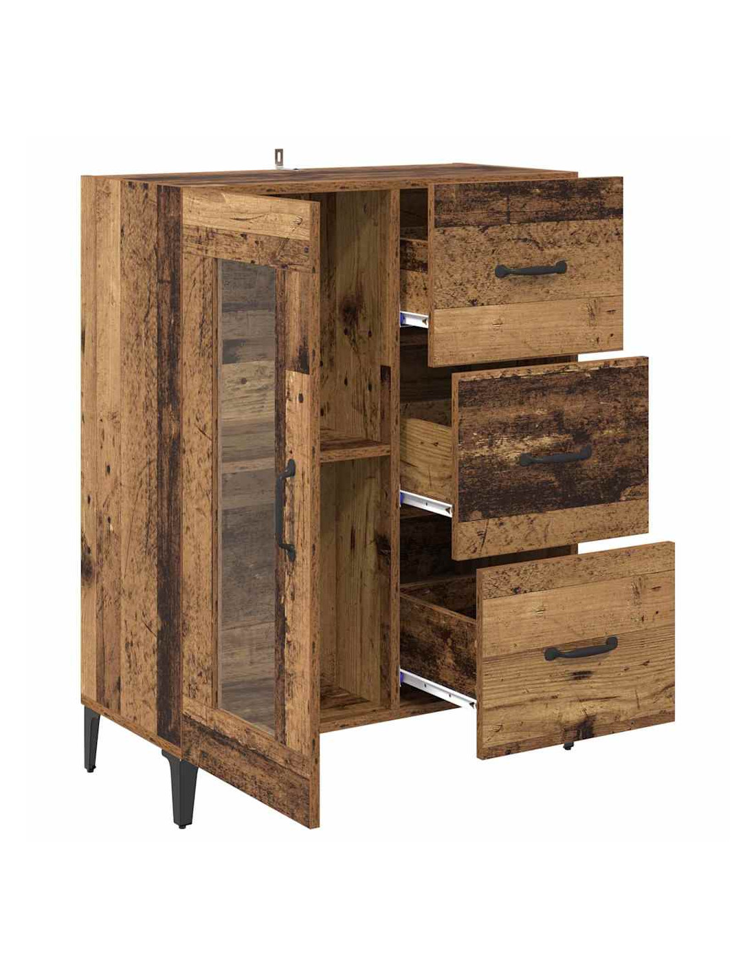 - Piedini in ferro: Le robuste gambe in ferro assicurano stabilità e contribuiscono alla solidità complessiva della credenza. La finitura nera opaca si abbina perfettamente a vari stili di arredamento.