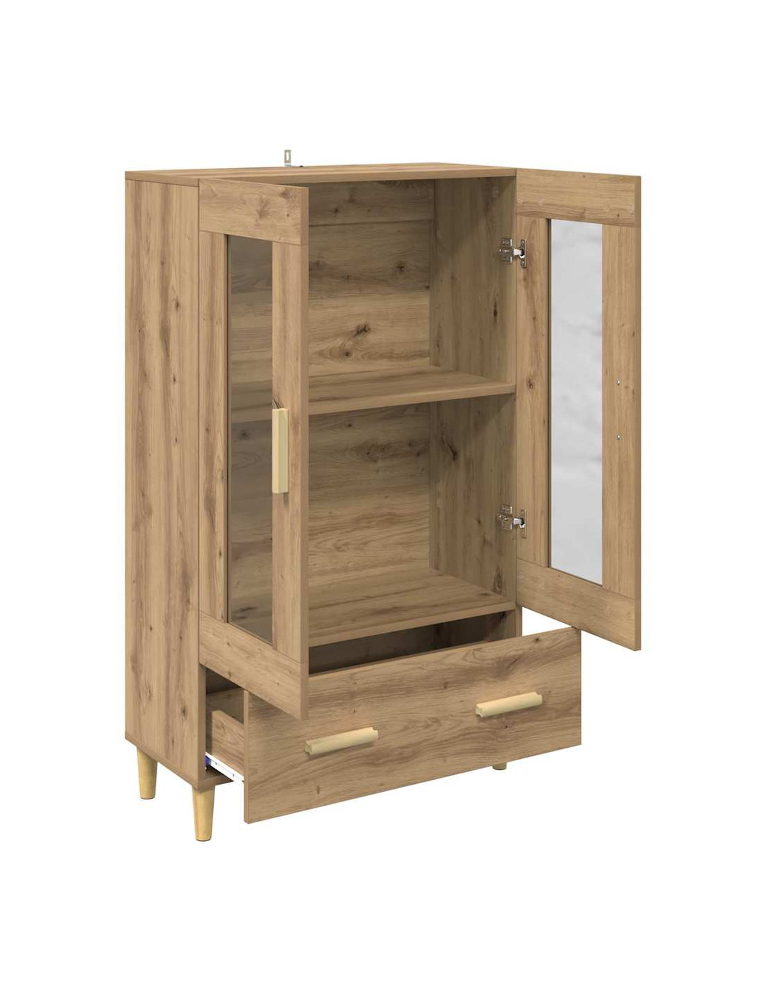 Il Highboard in legno ingegnerizzato unisce stile moderno e funzionalità, rendendolo un'aggiunta chic a qualsiasi soggiorno. Con la sua forma rettangolare elegante, porta un vibe contemporaneo nel tuo spazio, perfetto per tenere in ordine e mettere in mostra i tuoi oggetti preferiti. Le maniglie lucide, le gambe affusolate e le porte in vetro gli danno un tocco di eleganza, mentre il telaio in legno ingegnerizzato assicura stabilità duratura. Che tu lo usi per libri, decorazioni o oggetti di uso quotidiano, questo highboard offre ampio spazio di stoccaggio, integrandosi facilmente nei moderni interni minimalisti.