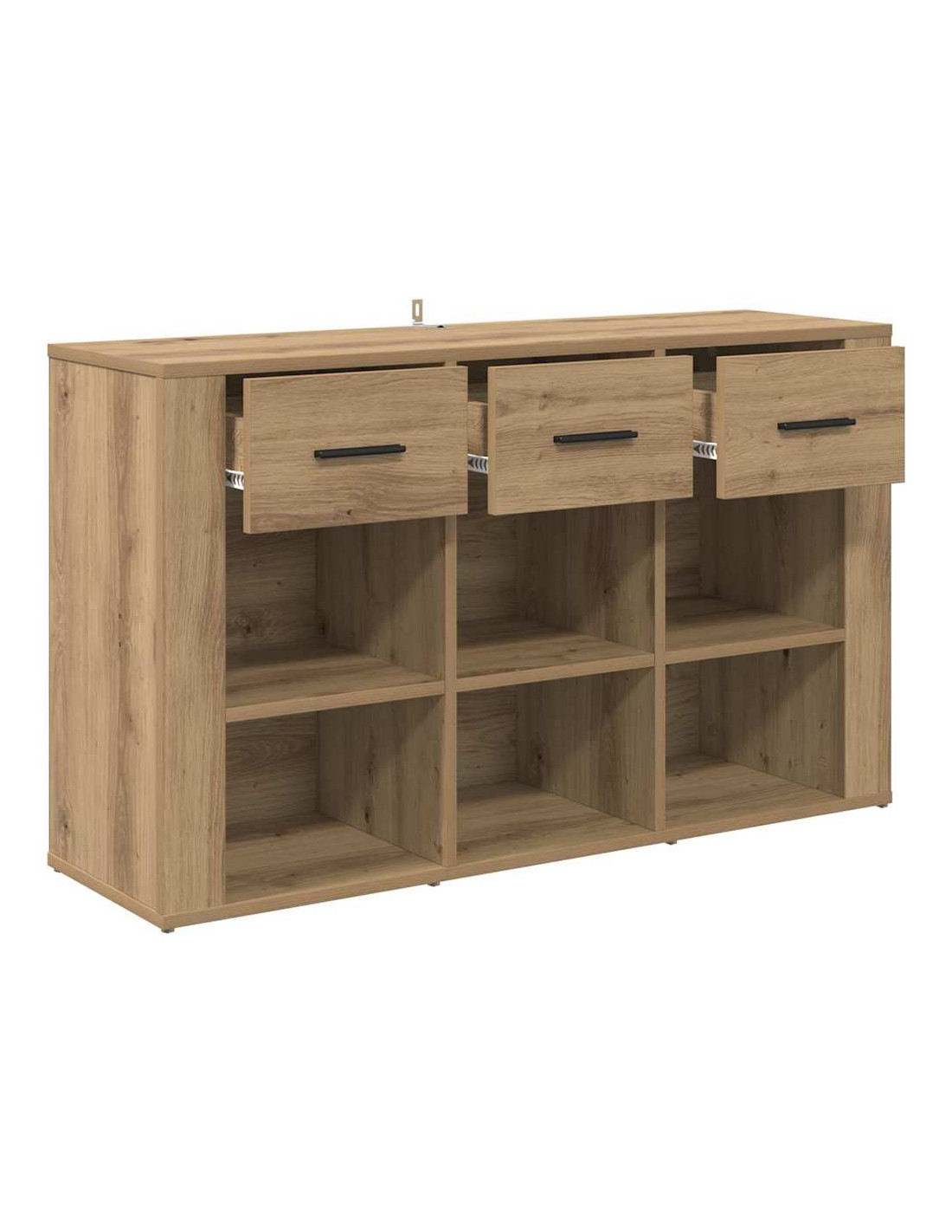 - Costruzione robusta L'artigianato in legno ingegnerizzato la rende duratura, mantenendo un aspetto elegante. È progettata per resistere all'uso quotidiano, supportando oggetti sia sulla sua superficie che nei suoi scomparti.