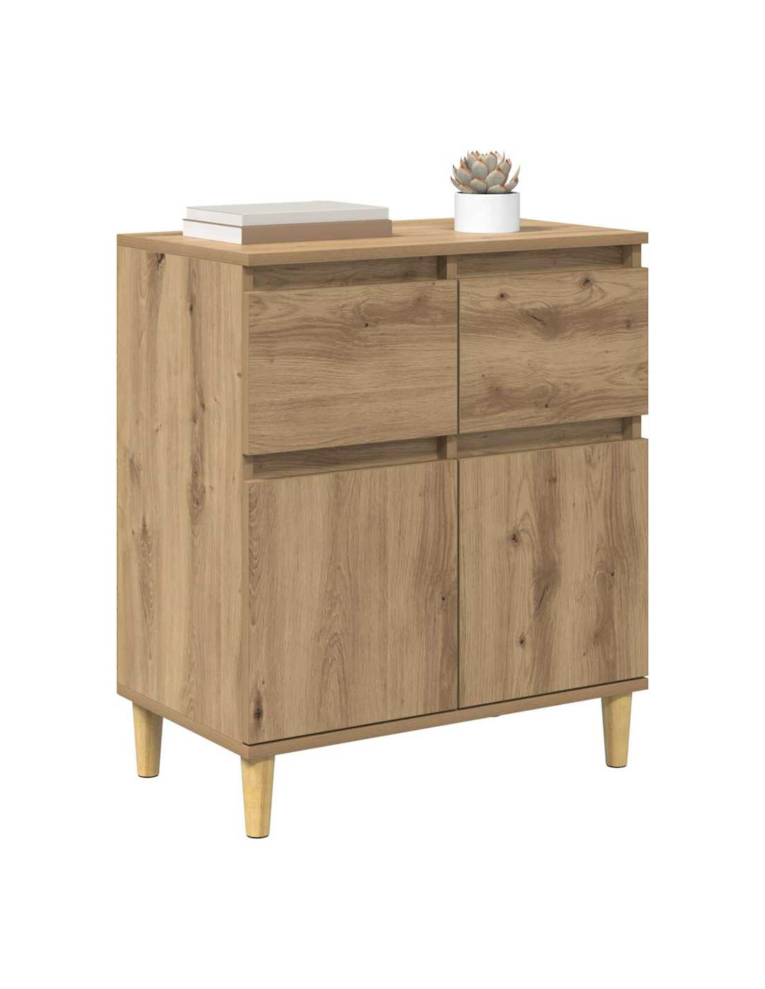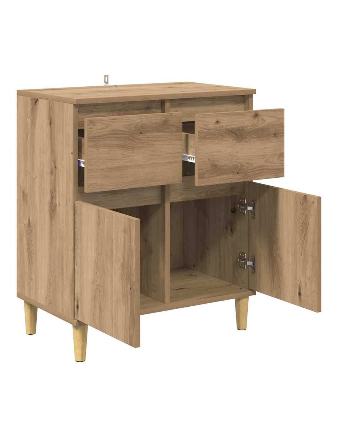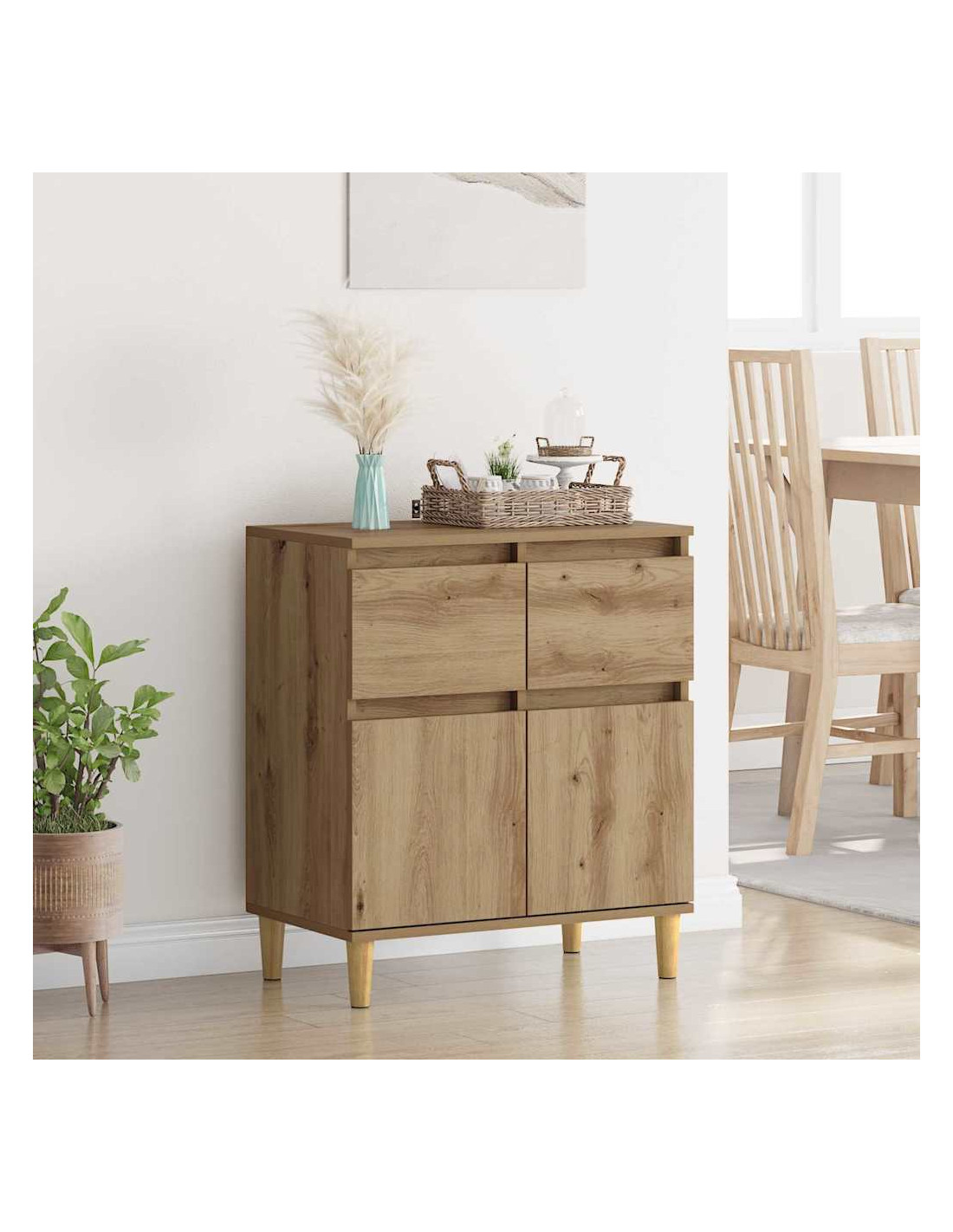 - Costruzione in legno ingegnerizzato: Questa credenza è realizzata in legno ingegnerizzato di qualità, garantendo robustezza e stabilità. Ha una finitura uniforme che crea un'atmosfera moderna senza richiedere troppa manutenzione. Il materiale scelto assicura che non si deformi nel tempo, anche in caso di umidità variabile.