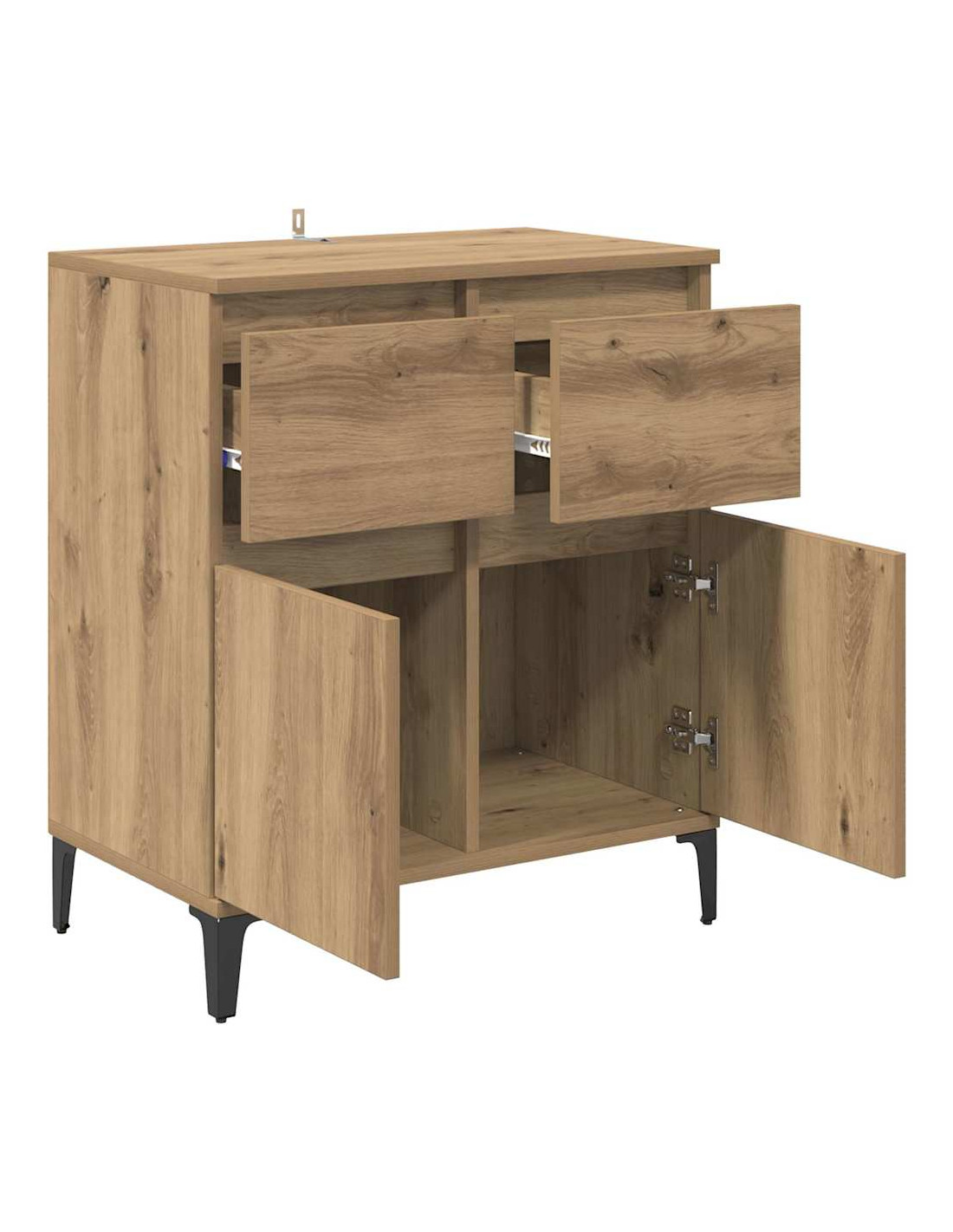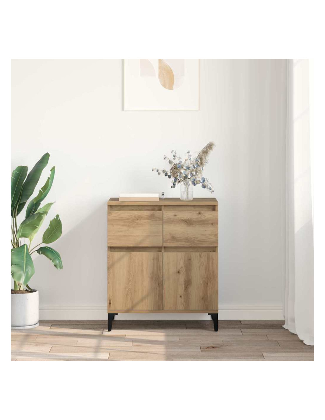 - Legno ingegnerizzato e ferro: Questo mobile è fatto di legno ingegnerizzato, resistente e impermeabile alla deformazione, unito a piedi in ferro per maggiore stabilità. È duraturo e ha un aspetto moderno che si integra bene in vari stili di interni.