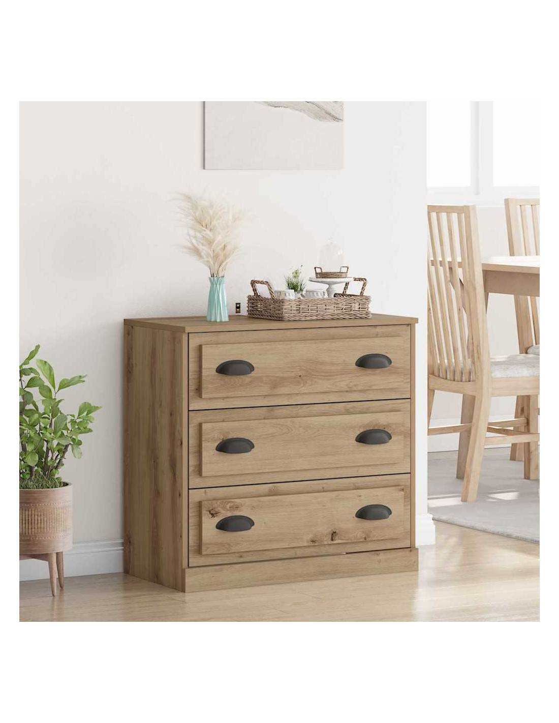 Questa credenza è un'unità rettangolare che combina perfettamente stile e praticità. Il design moderno porta un tocco rustico in soggiorni o sale da pranzo e si presta a vari usi. Grazie alle maniglie a D, i cassetti si aprono facilmente. Crea un'atmosfera calda e accogliente ovunque la metti. È pensata per interni e si adatta bene a qualsiasi decorazione, che sia moderna o tradizionale.