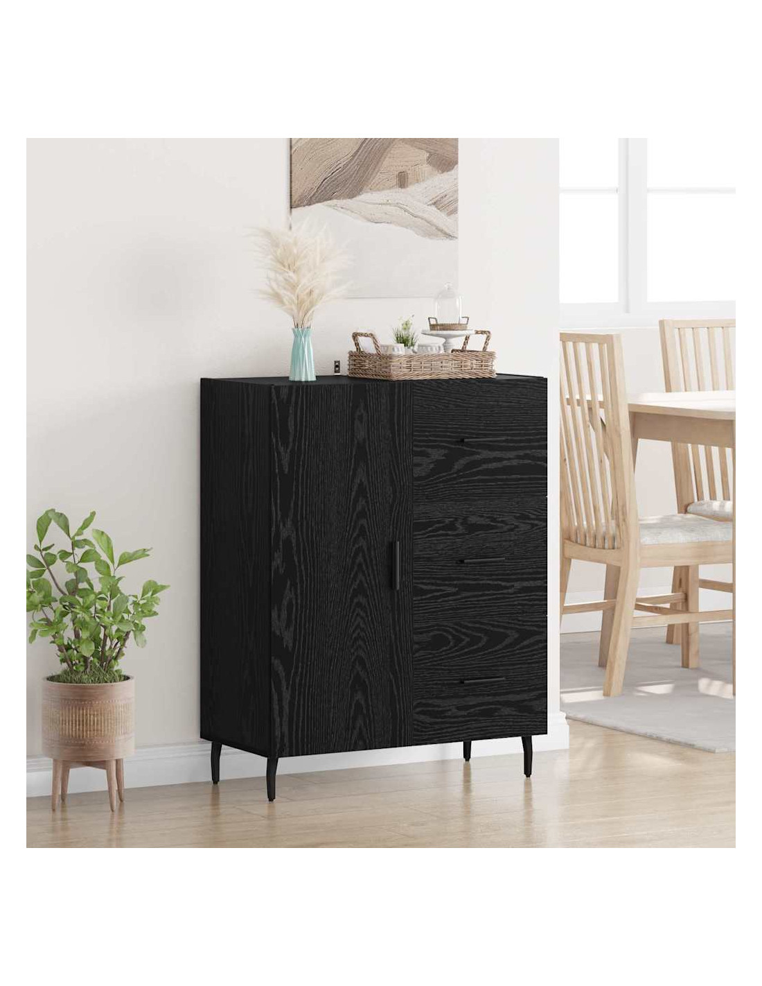 La credenza in legno ingegnerizzato Chic è un pezzo funzionale e sofisticato, perfetta per spazi moderni. Ottima per chi ama lo stile e la praticità, questa credenza rettangolare ha un design semplice e elegante, adatta a qualunque arredamento contemporaneo. Offre soluzioni di stoccaggio ideali ed è costruita con materiali di alta qualità, per resistere nel tempo, perfetta per riporre oggetti personali o per mostrare pezzi decorativi nel soggiorno o nella sala da pranzo.
