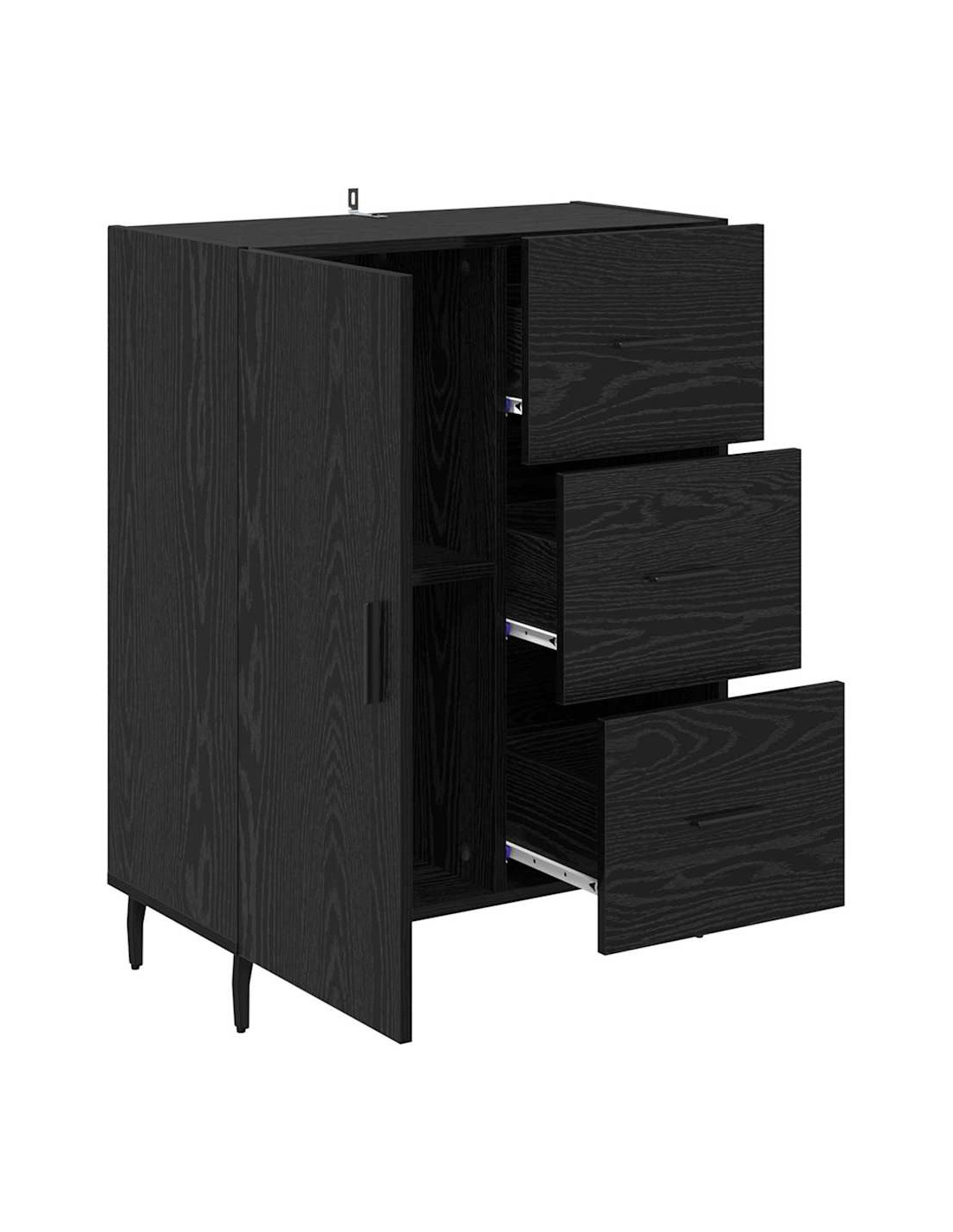 - Meccanismo delle porte a cerniera: Le porte a cerniera si aprono e chiudono con facilità. Questo design facilita l'accesso agli oggetti riposti, mantenendo l'aspetto elegante della credenza. Le maniglie a barra opaca sono comode e aggiungono un tocco di stile moderno.