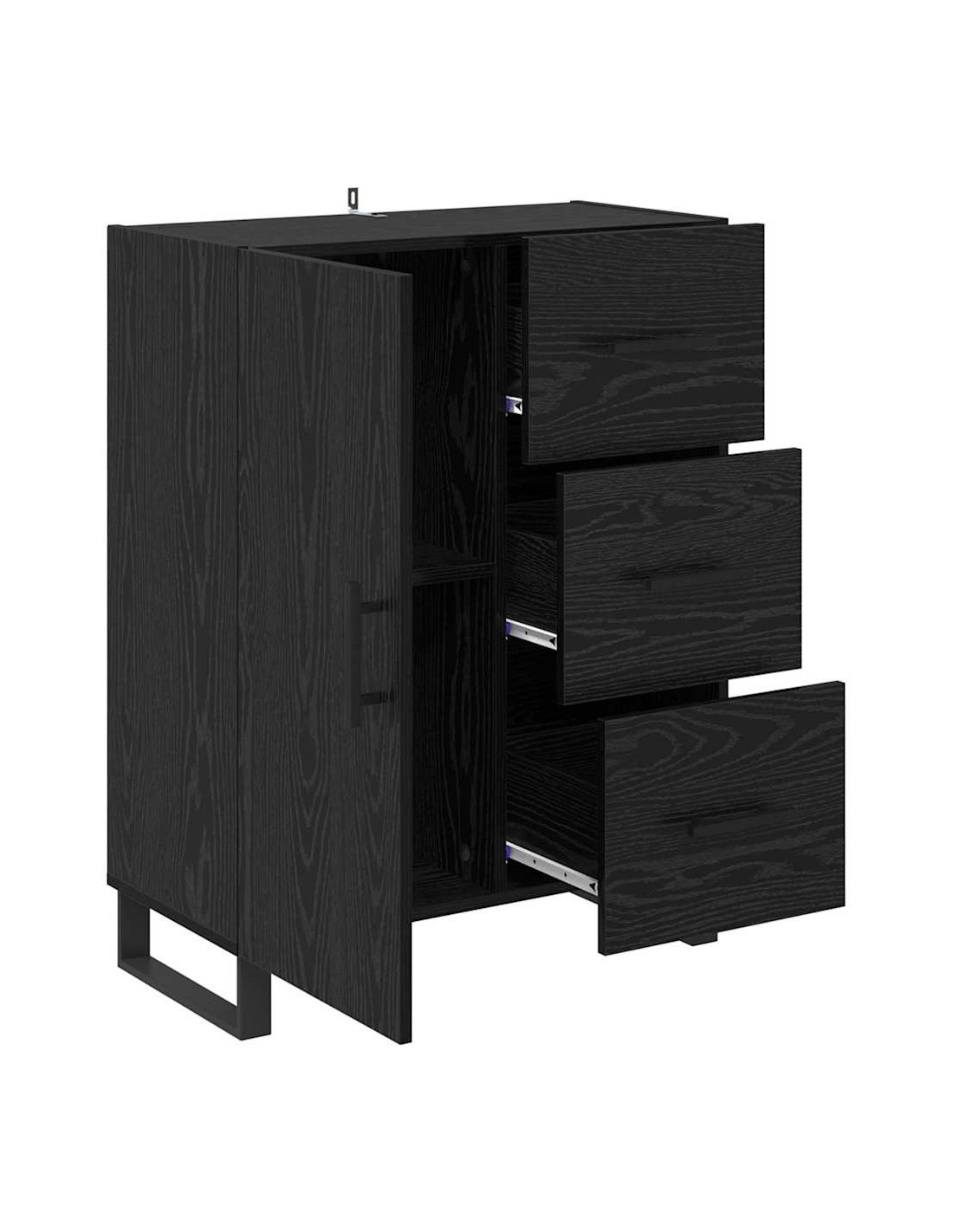 - Caratteristiche / Funzione / Design: Questa credenza punta su un design minimalista semplice e funzionale. I piedi in ferro le danno sostegno, mentre le maniglie nere opache aggiungono eleganza. Un contrasto tra stile e praticità.