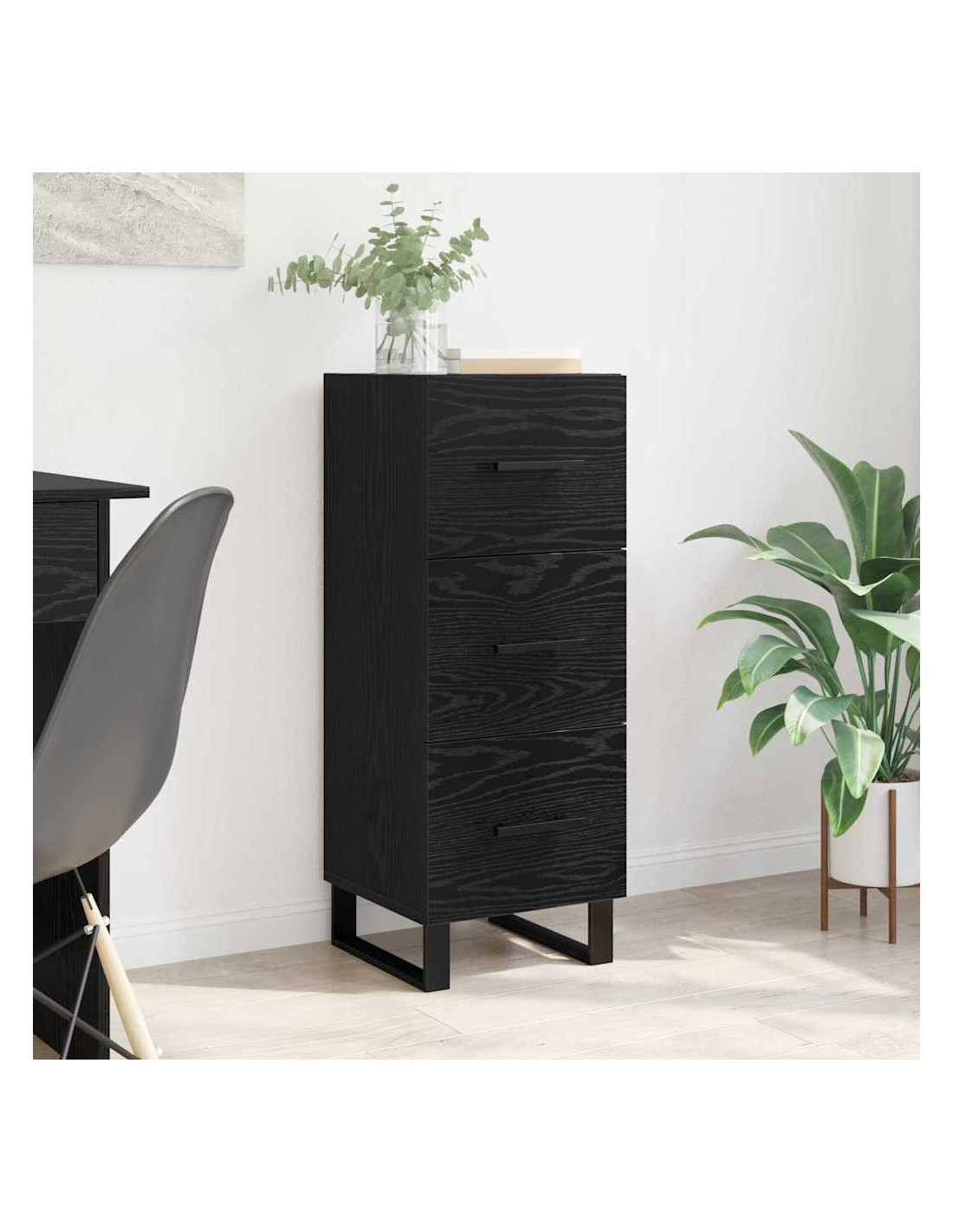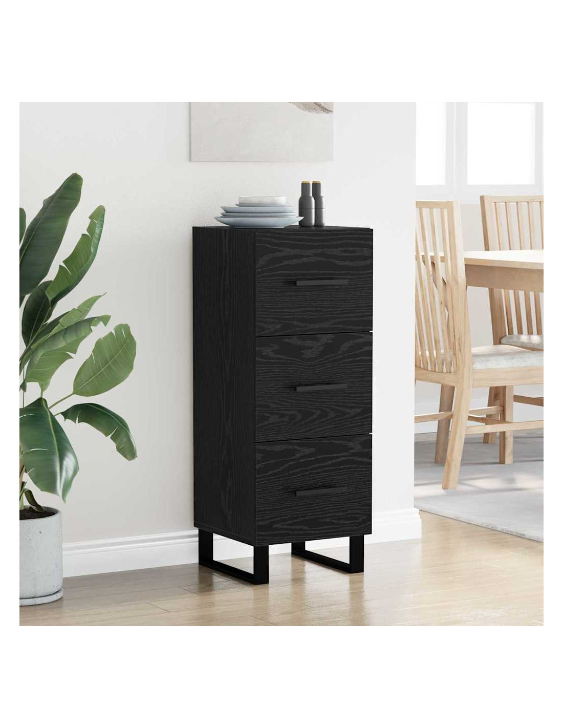- Stabilità delle gambe a palo: Le gambe robuste in ferro assicurano che la credenza sia stabile e resistente. Rivestite di nero, si adattano perfettamente a uno stile rustico.