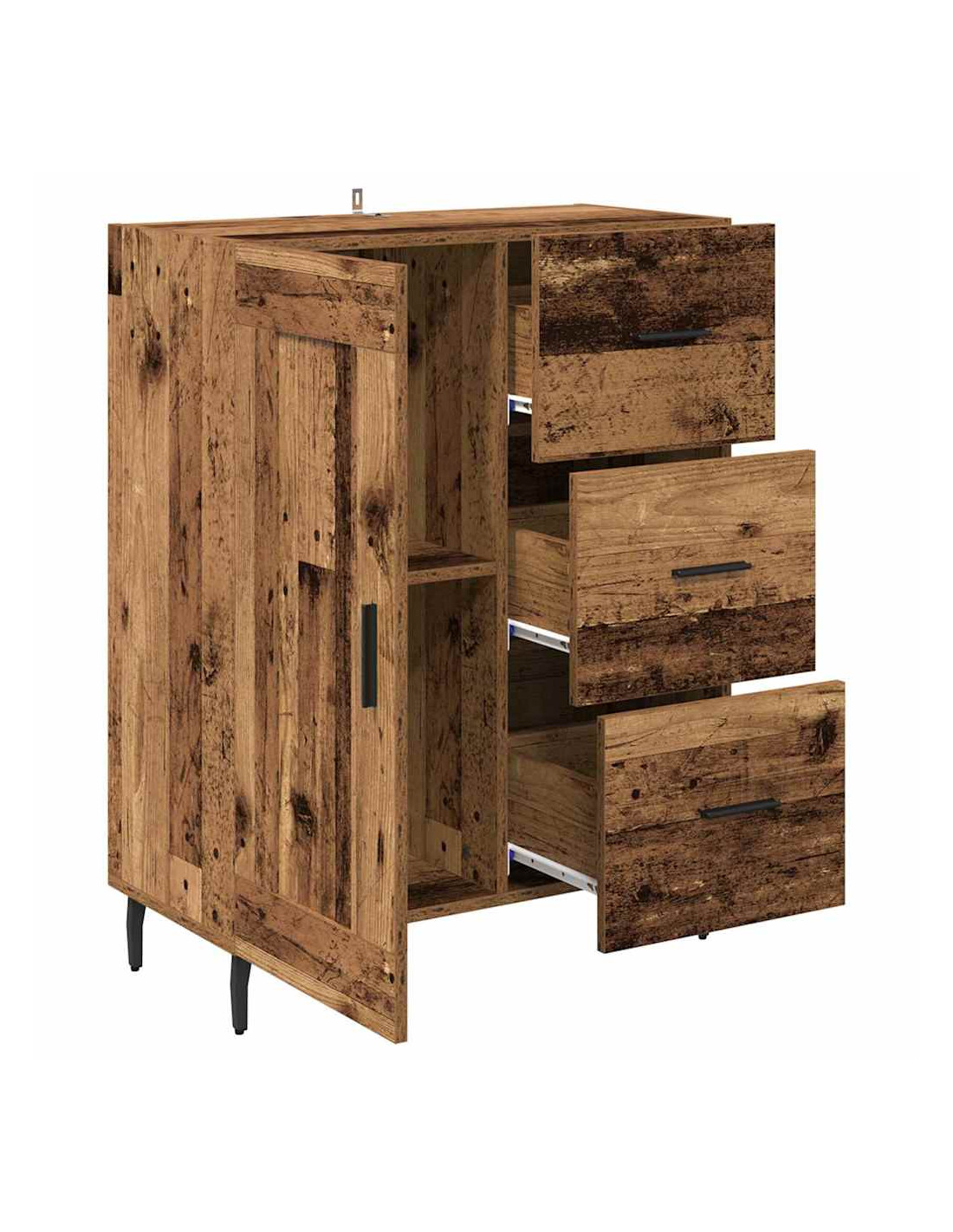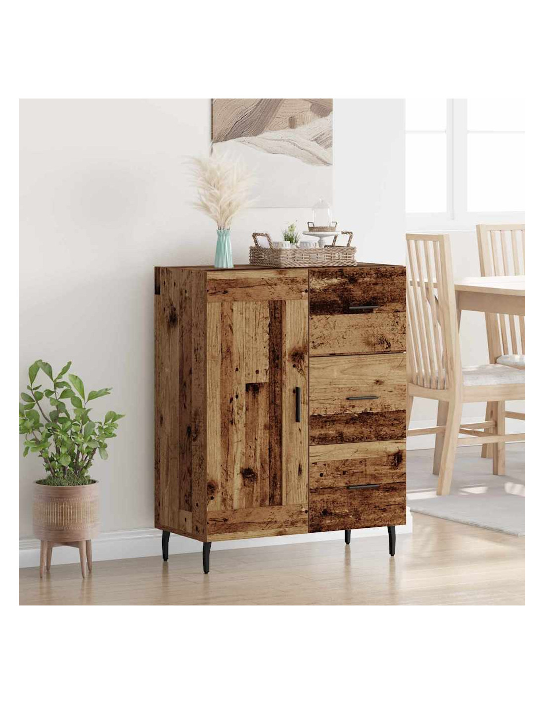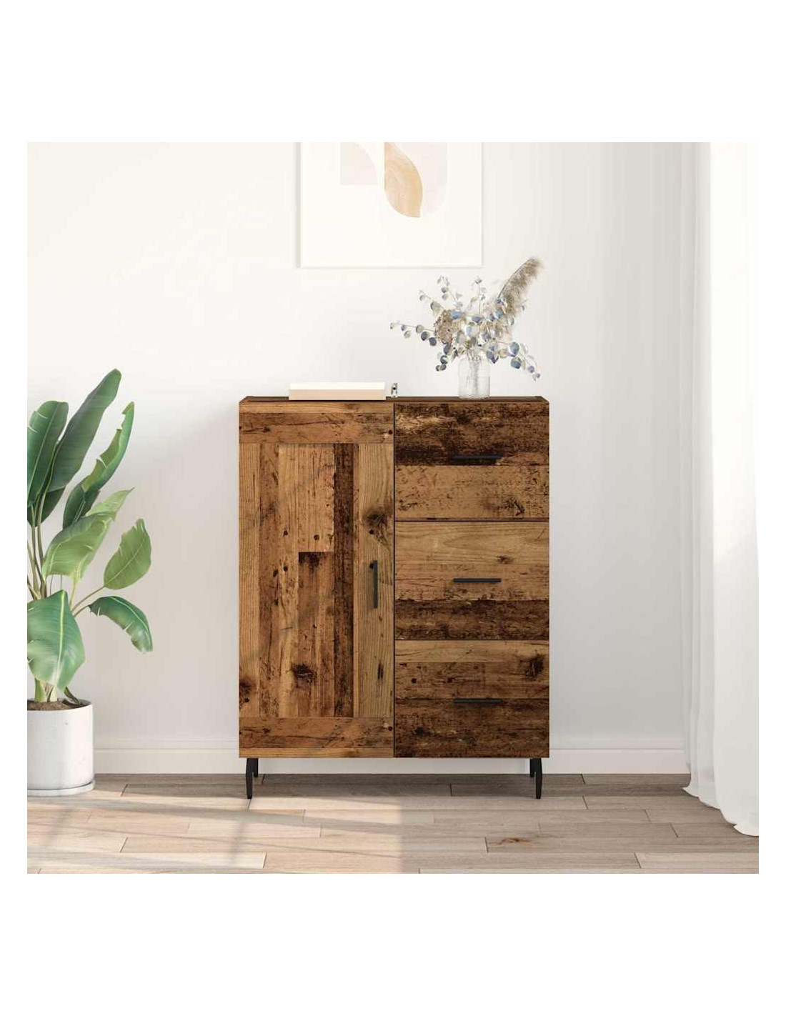 - Costruzione in legno ingegnerizzato: Questo mobile laterale è fatto in legno ingegnerizzato di alta qualità, garantendo robustezza. Questo materiale è scelto per la sua durata, senza compromettere lo stile, ed è anche facile da pulire.