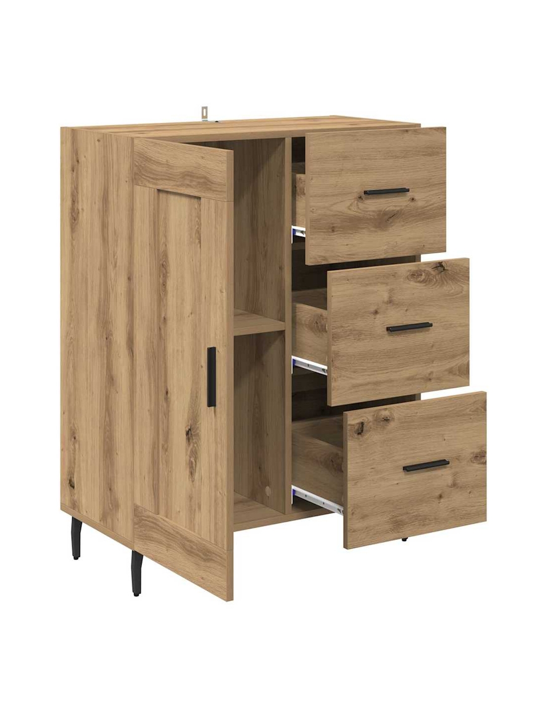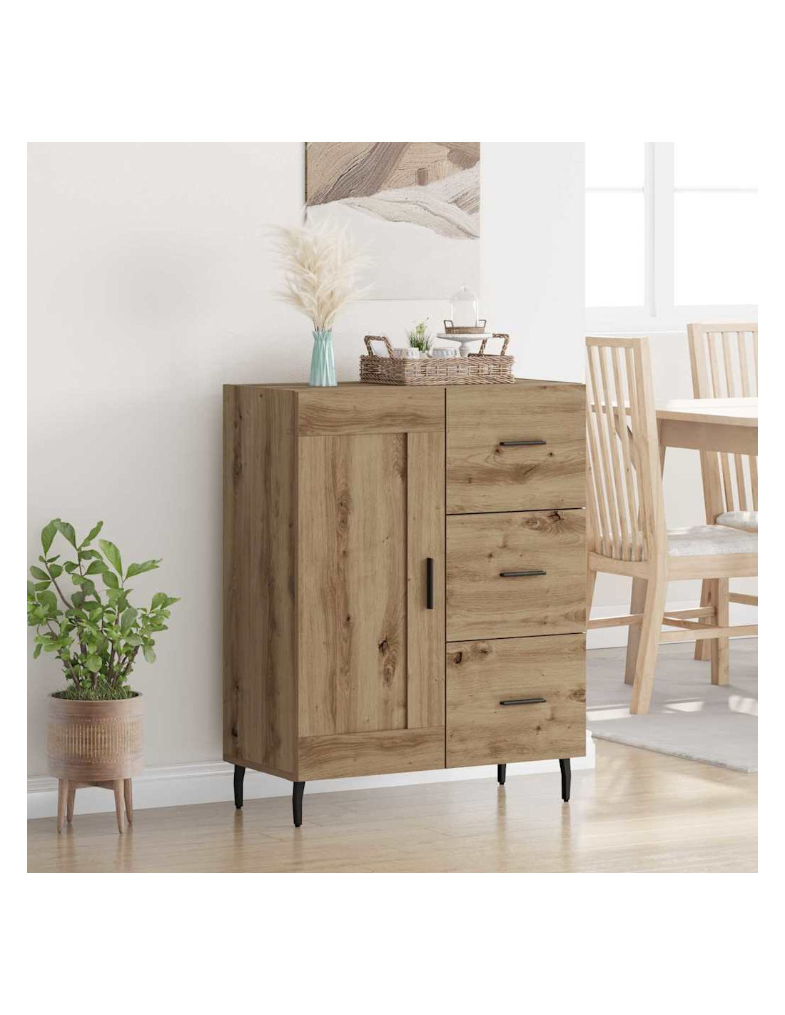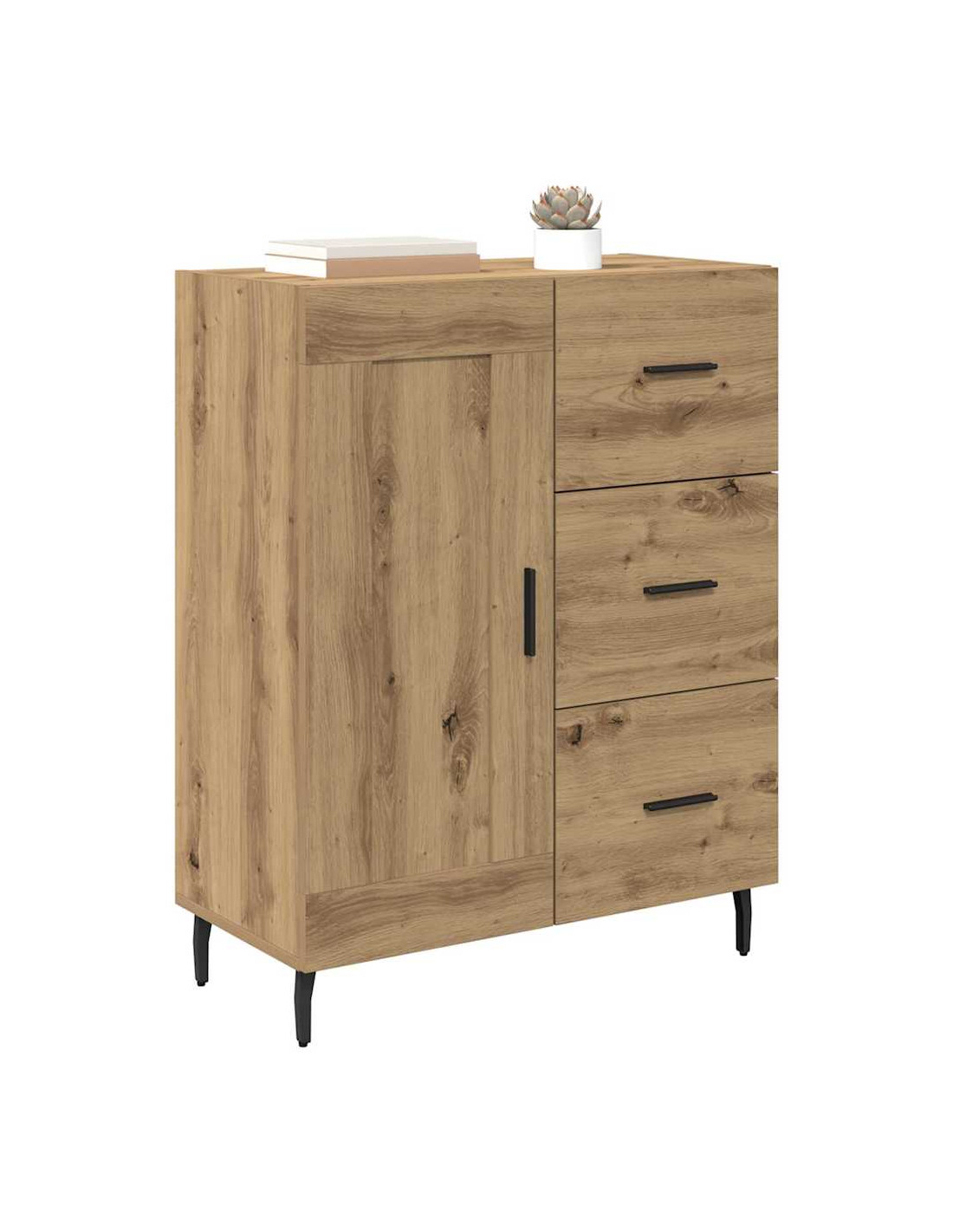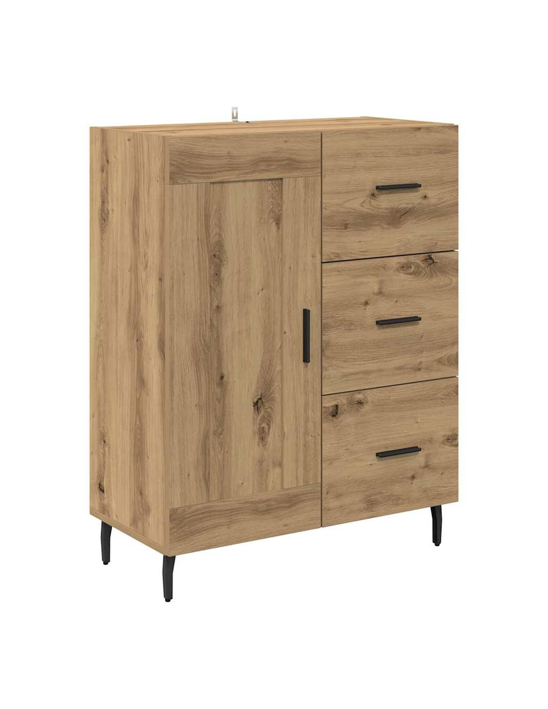 - Costruzione in legno ingegnerizzato: Questo mobile laterale è fatto in legno ingegnerizzato di alta qualità, garantendo robustezza. Questo materiale è scelto per la sua durata, senza compromettere lo stile, ed è anche facile da pulire.