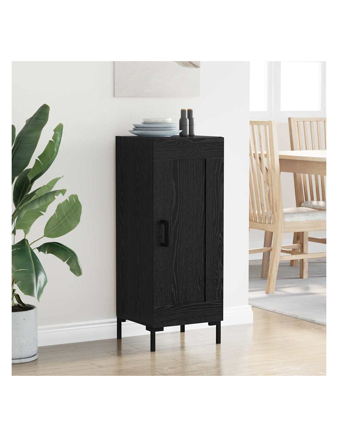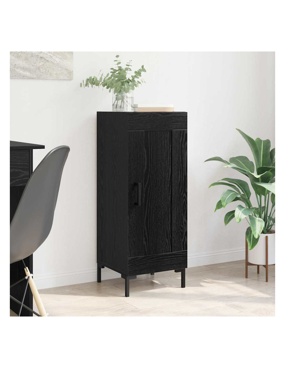 - Caratteristiche / Funzione / Design: Le porte a cerniera con maniglie nere opache non sono solo belle, ma anche resistenti. La combinazione di estetica e praticità è evidente, perfetta per chi ama decorazioni moderne e minimaliste. Le gambe quadrate in ferro garantiscono supporto e durata.
