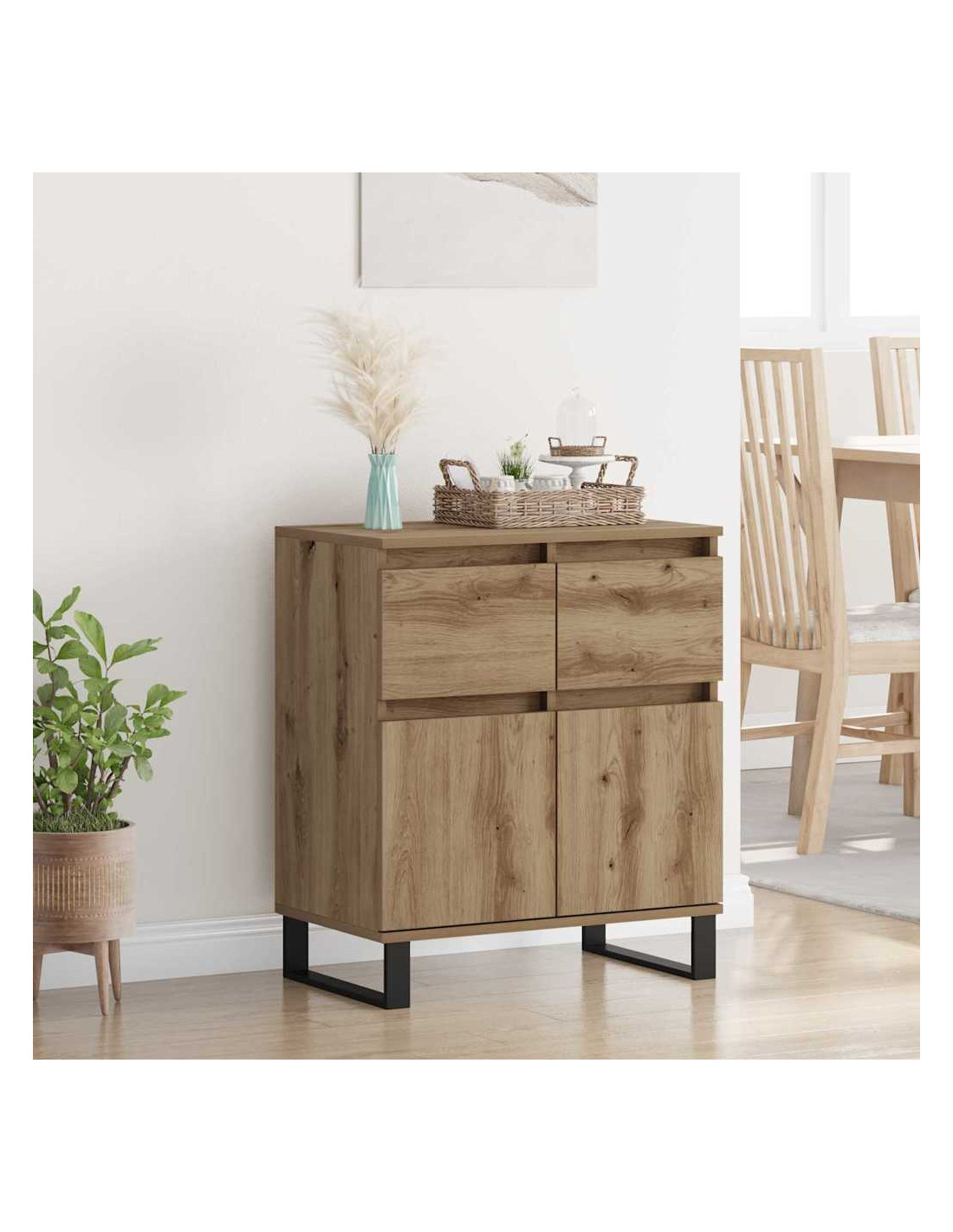 Questo mobiletto è un'aggiunta fondamentale per le case moderne, con ampio spazio di stoccaggio e un design elegante. Semplice e funzionale, si integra benissimo in qualsiasi soggiorno o area da pranzo, mantenendo tutto in ordine e bello da vedere.