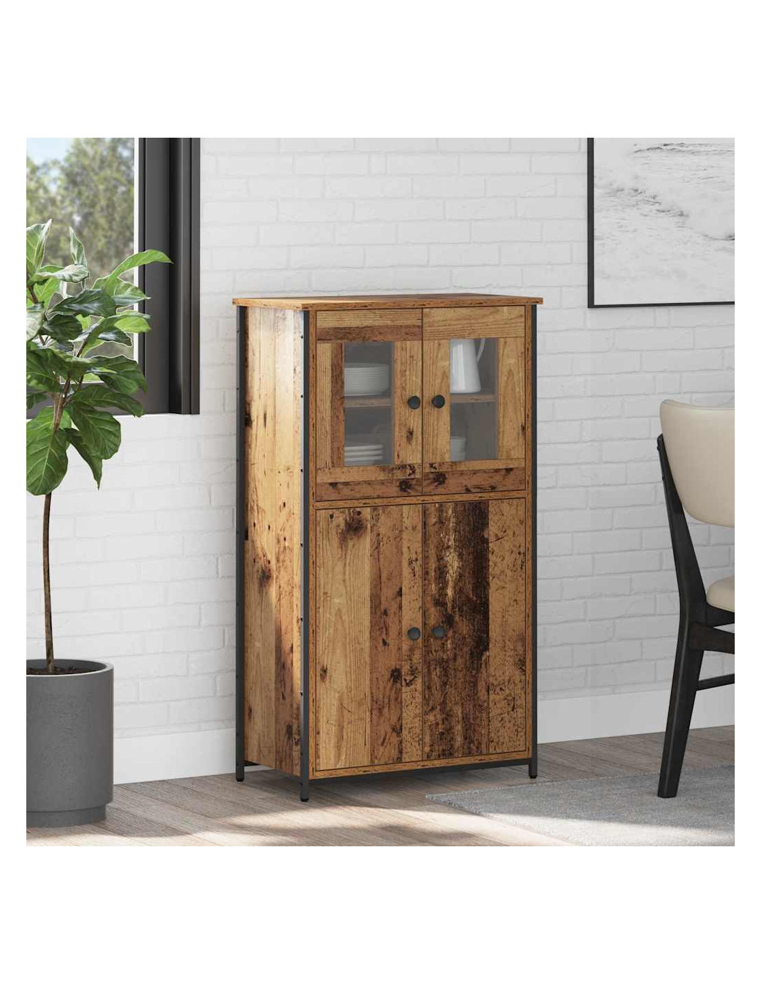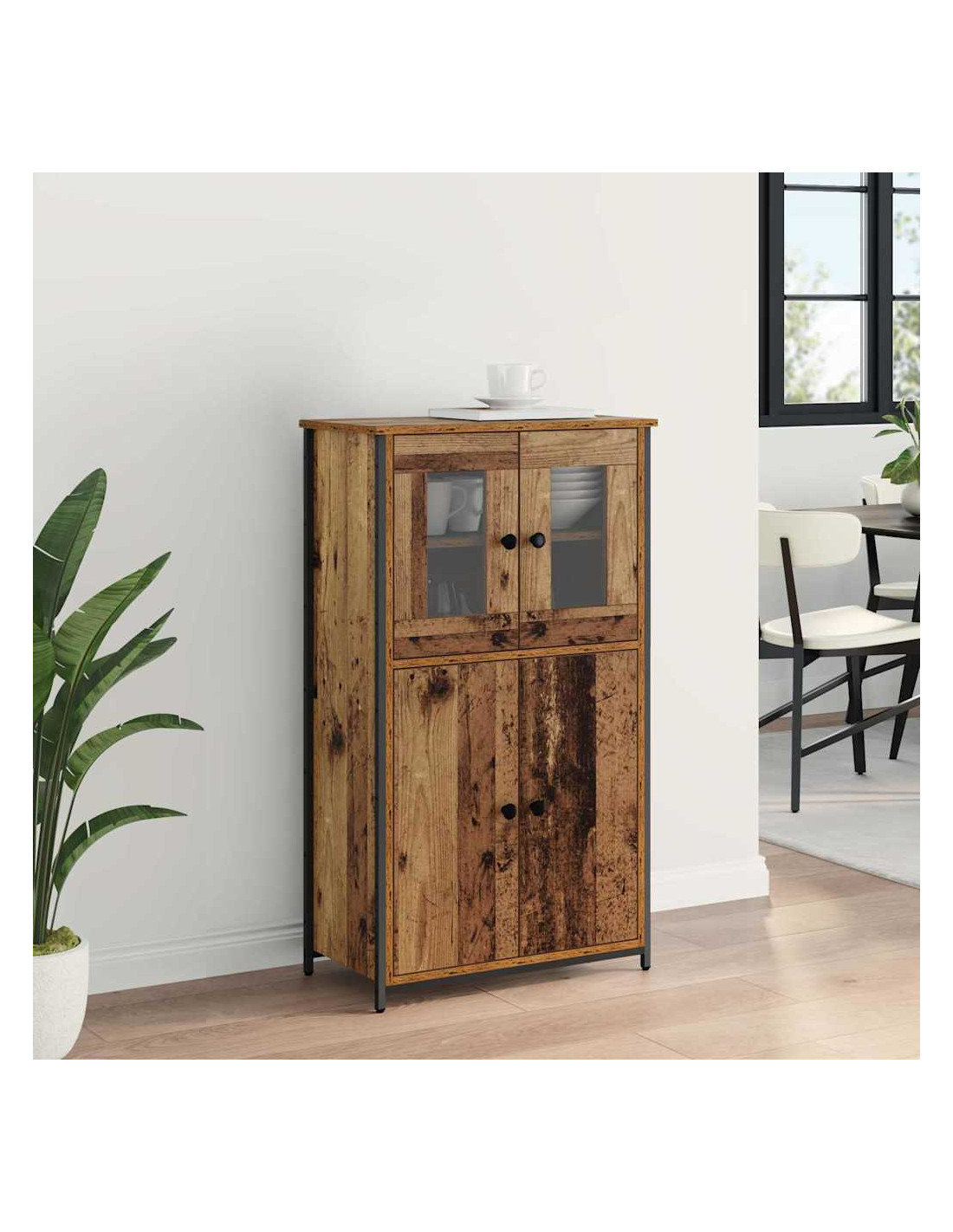- Costruzione in legno ingegnerizzato: Questo highboard è in legno ingegnerizzato, che offre robustezza e resistenza. Questo materiale garantisce una superficie liscia e durevole che regge l'usura quotidiana mantenendo un aspetto chic.