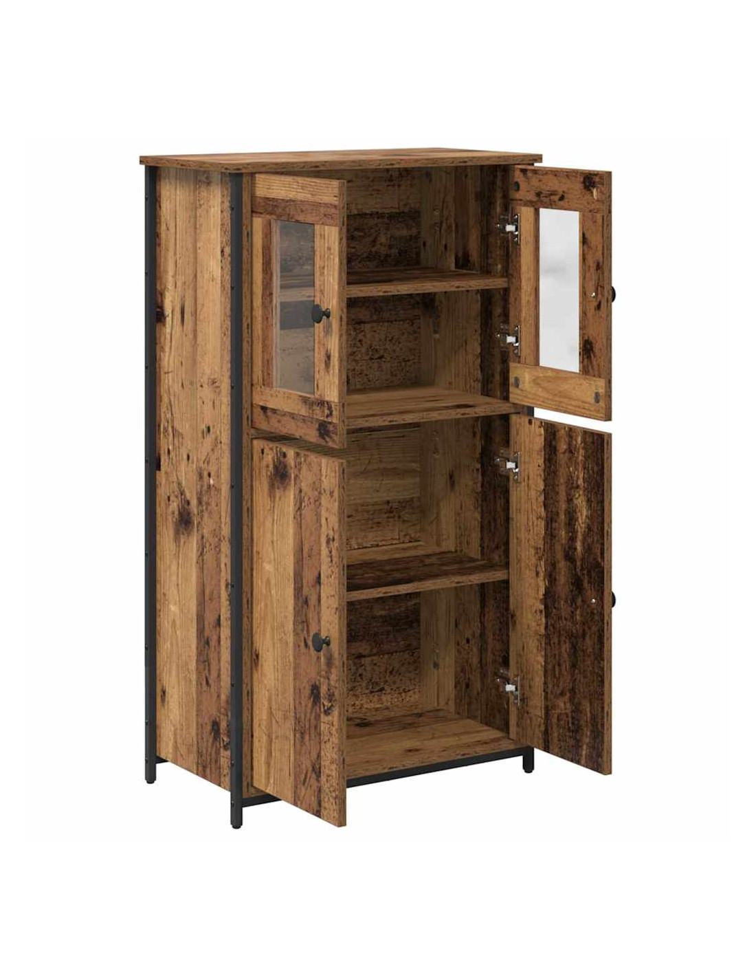 - Ripiani in pannello: All'interno, i ripiani in pannello sono perfetti per riporre libri, decorazioni o stoviglie. Le porte a cerniera aiutano a tenere tutto in ordine e protetto.