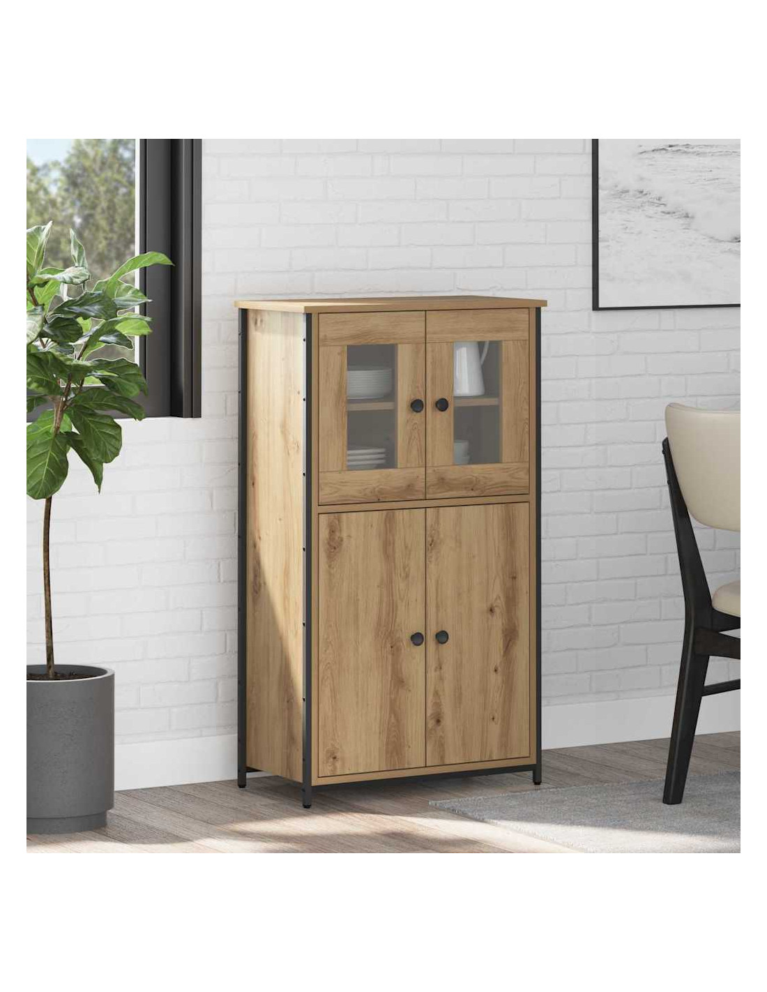 - Costruzione in legno ingegnerizzato: Questo highboard è in legno ingegnerizzato, che offre robustezza e resistenza. Questo materiale garantisce una superficie liscia e durevole che regge l'usura quotidiana mantenendo un aspetto chic.