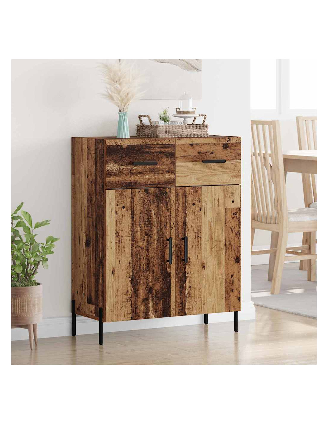 - Design funzionale: Con ampio spazio di archiviazione tra scomparti, cassetti e ripiani, è perfetta per stoviglie, libri o decorazioni. La struttura in legno ingegnerizzato è resistente e supporta un layout pratico, contribuendo a mantenere l'ordine.