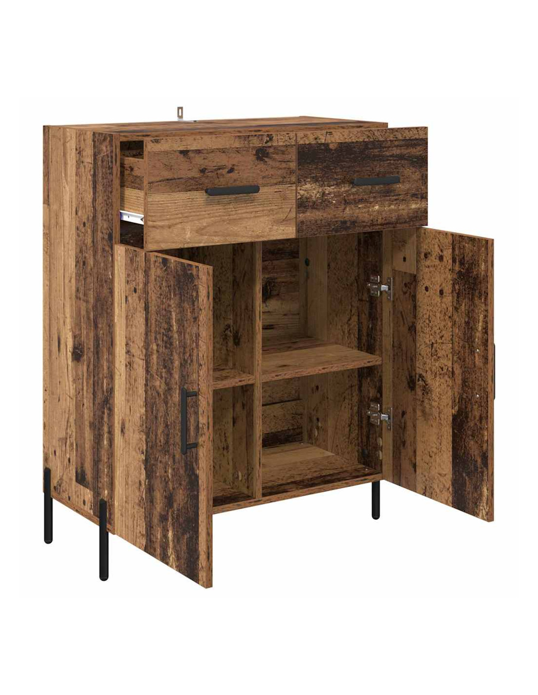- Componenti inclusi: Include ripiani in pannello per vari oggetti, mantenendoli organizzati e facili da raggiungere. I cassetti hanno maniglie in metallo opaco per un accesso rapido, mentre le porte in legno ingegnerizzato offrono un aspetto pulito e coordinato, migliorando sia l'organizzazione che l'estetica.