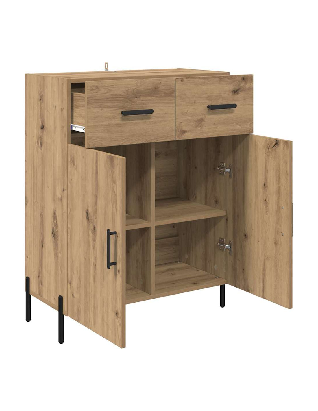 - Componenti inclusi: Include ripiani in pannello per vari oggetti, mantenendoli organizzati e facili da raggiungere. I cassetti hanno maniglie in metallo opaco per un accesso rapido, mentre le porte in legno ingegnerizzato offrono un aspetto pulito e coordinato, migliorando sia l'organizzazione che l'estetica.