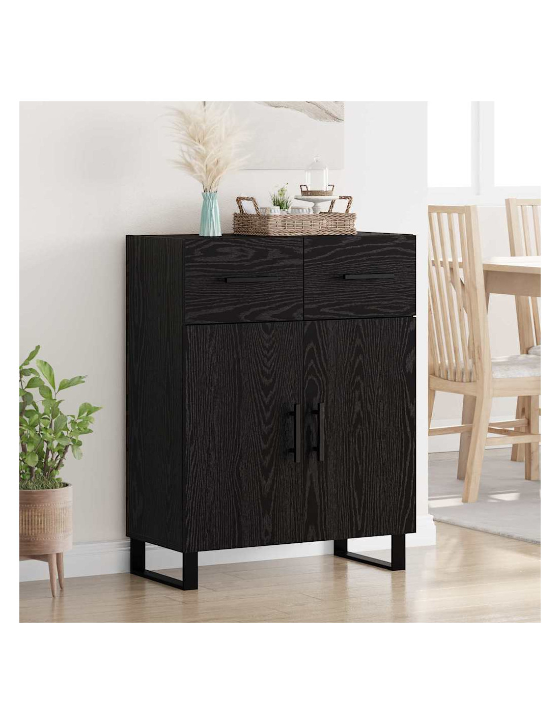 - Costruzione in legno ingegnerizzato: Questa credenza è realizzata in legno ingegnerizzato di qualità, garantendo robustezza. È resistente all'usura, quindi perfetta per un uso lungo in vari spazi. Il suo design è robusto e mantiene l'aspetto elegante nel tempo.