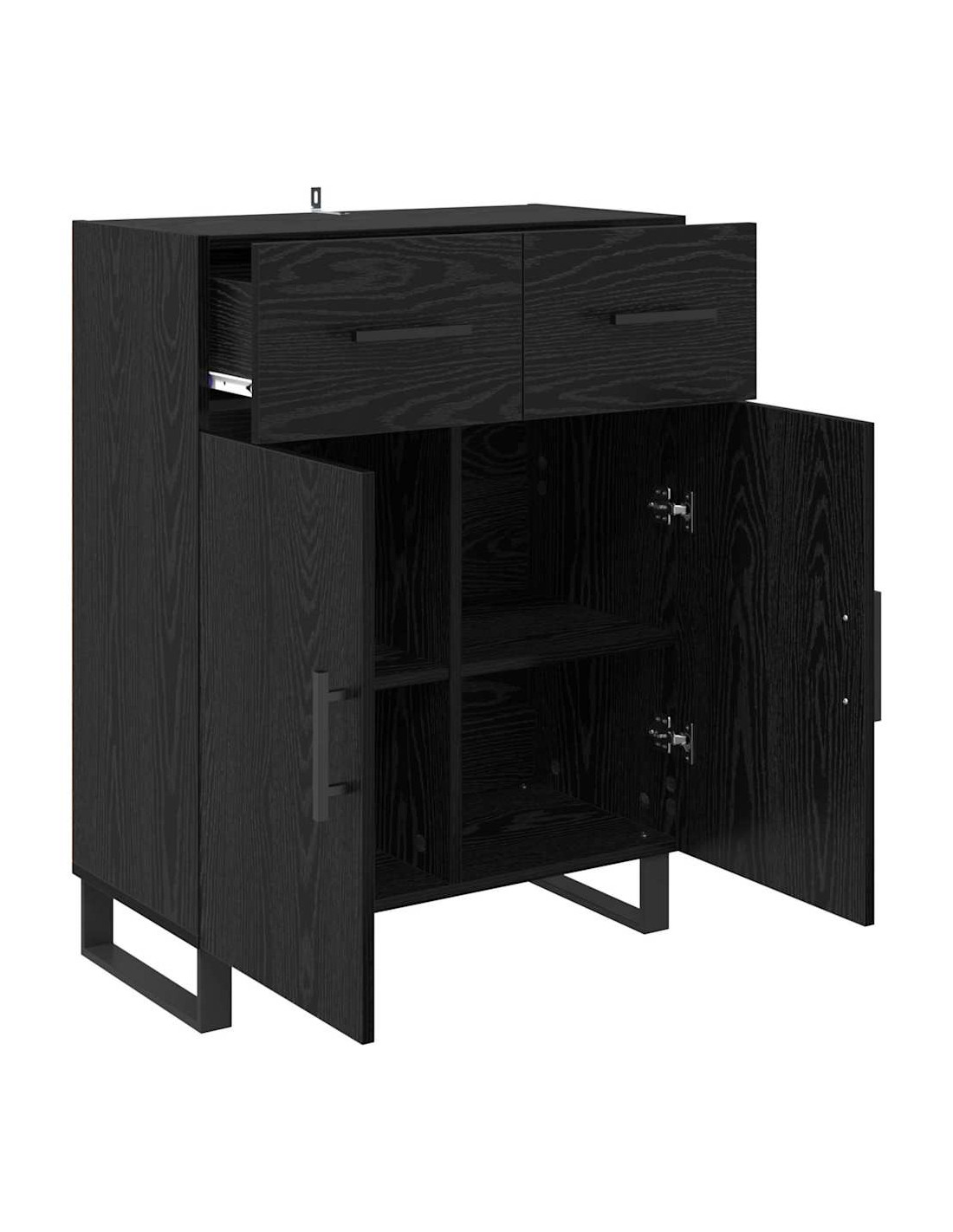 - Componenti pratici: Con ripiani e cassetti, questa credenza offre molte possibilità di stoccaggio. Dietro le porte ci sono scaffali pronti a organizzare tutto, dai piatti a libri e decorazioni, rendendo il tuo living più efficiente.