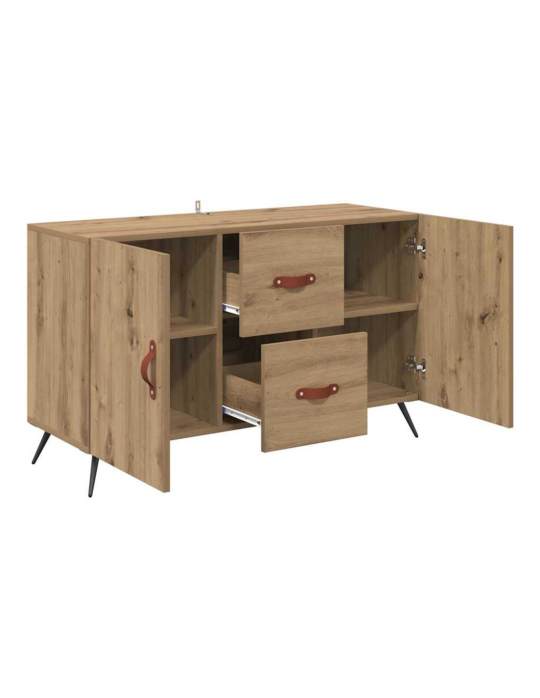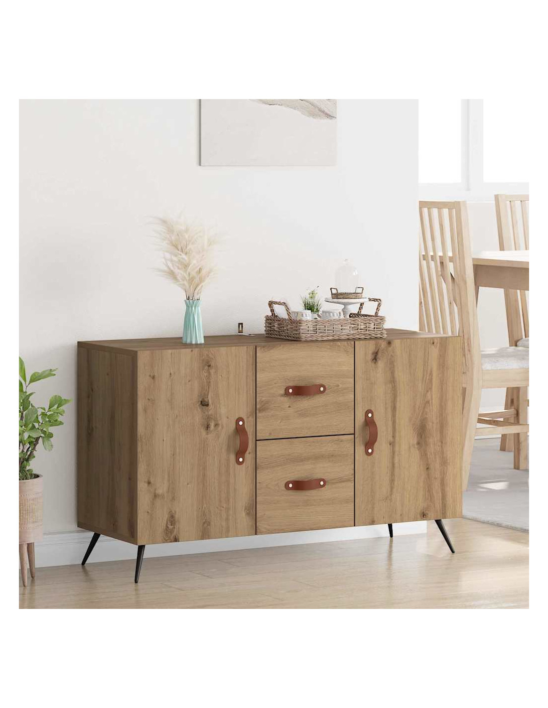 - Costruzione in legno ingegnerizzato: Questa credenza ha una struttura resistente in legno ingegnerizzato, che garantisce durabilità. È scelta per la sua resistenza all'usura, perfetta per l'uso di tutti i giorni. La texture sofisticata del legno aggiunge eleganza, migliorando l'aspetto complessivo di ogni stanza.