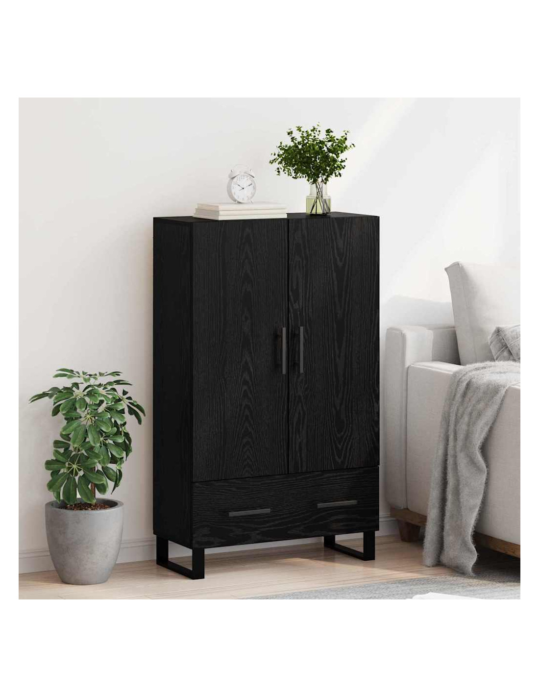 - Elementi di design moderno: Questo mobile alto rappresenta il design moderno con le sue linee pulite e senza fronzoli, perfetto per gli interni contemporanei. Le gambe in metallo quadrato e le maniglie nero opaco aggiungono un tocco di classe, migliorando l'estetica elegante del mobile. Questo pezzo ben progettato arricchisce qualsiasi ambiente, mantenendolo sia funzionale che alla moda.