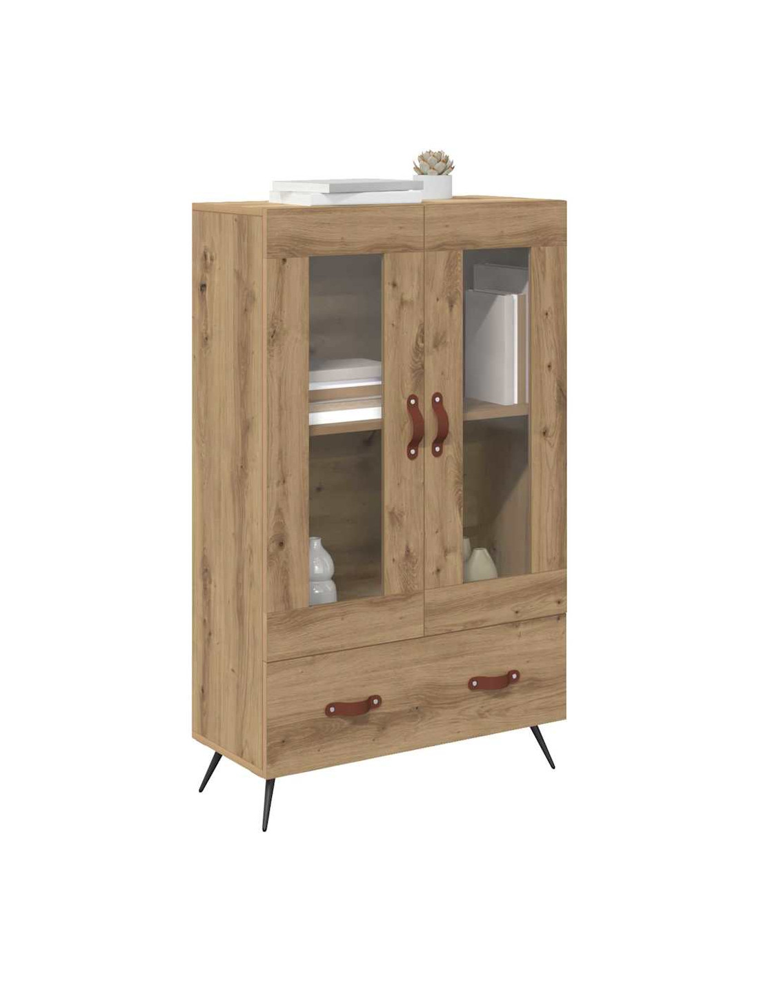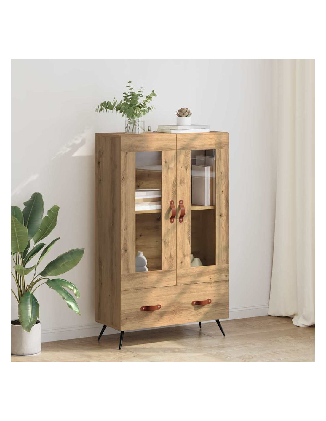 - Materiali: Il legno ingegnerizzato è robusto e facile da mantenere, mentre il vetro aggiunge un tocco elegante. Questo highboard è fatto per durare e resistere all'uso quotidiano, mantenendo un aspetto sofisticato con i pannelli in vetro che mostrano il tuo stile.