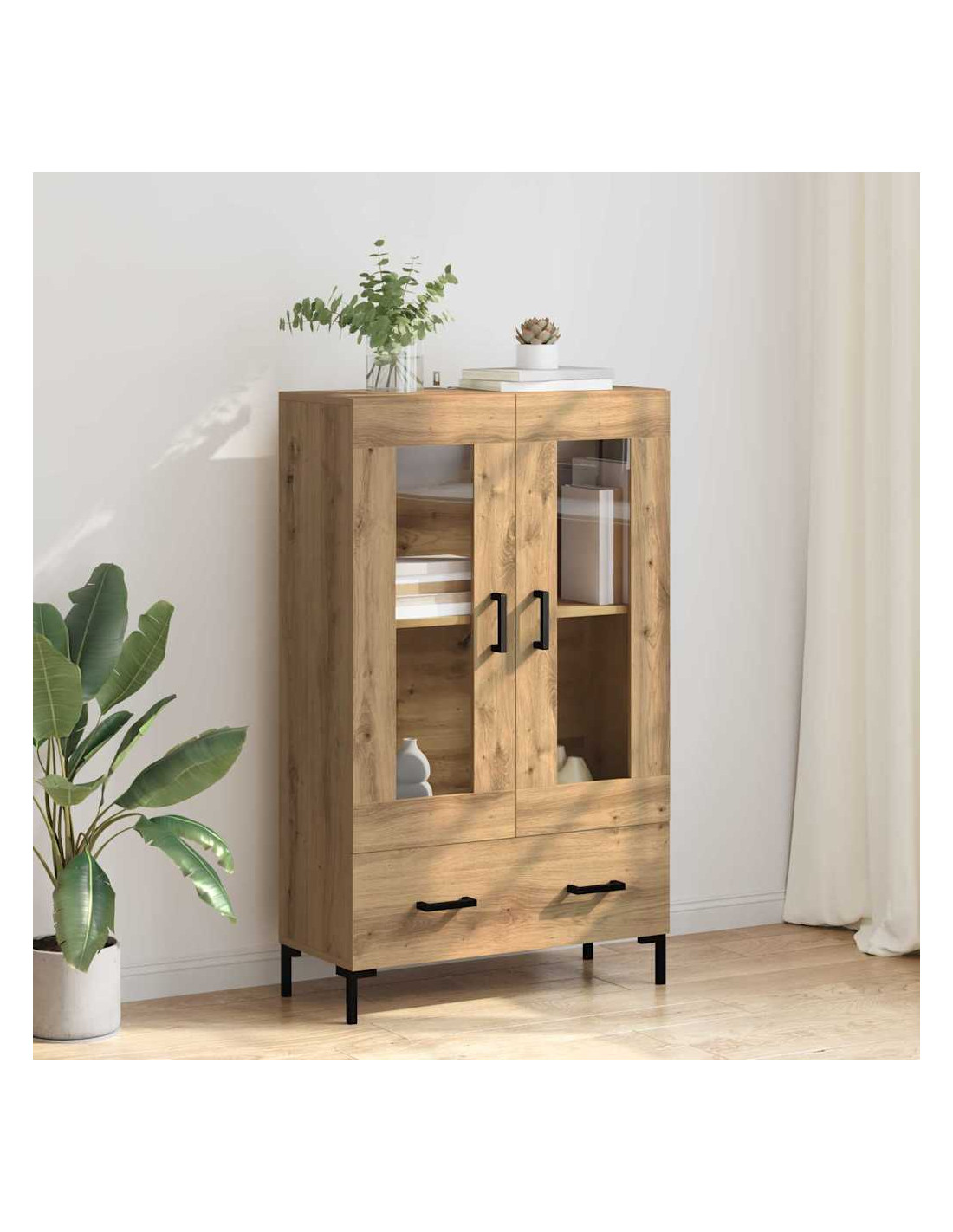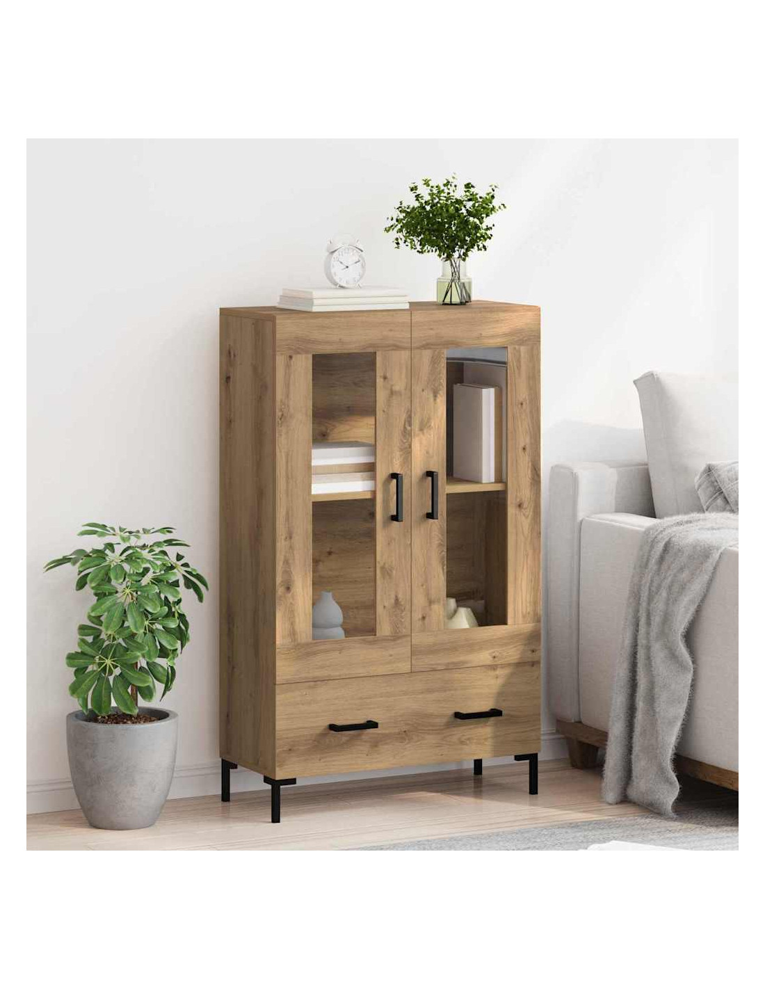 - Design minimalista moderno: Con linee pulite e praticità, il design moderno di questo highboard si fonde facilmente negli interni contemporanei. Aggiunge valore senza sovraccaricare gli spazi, ed è un tocco senza tempo per la tua casa.