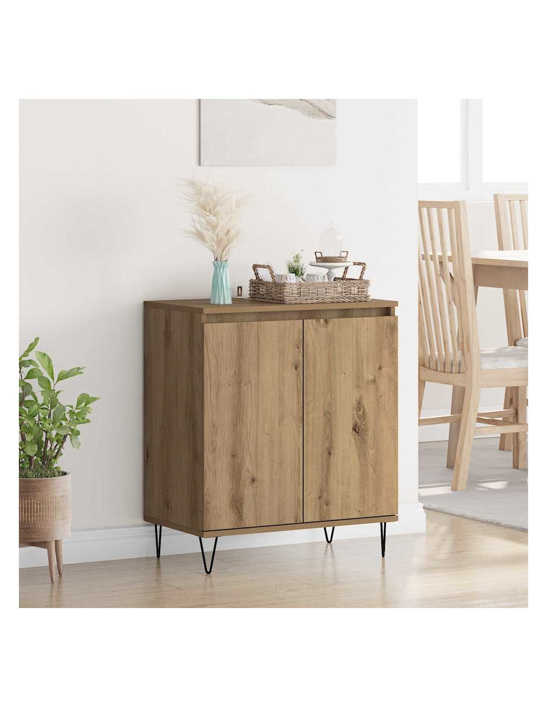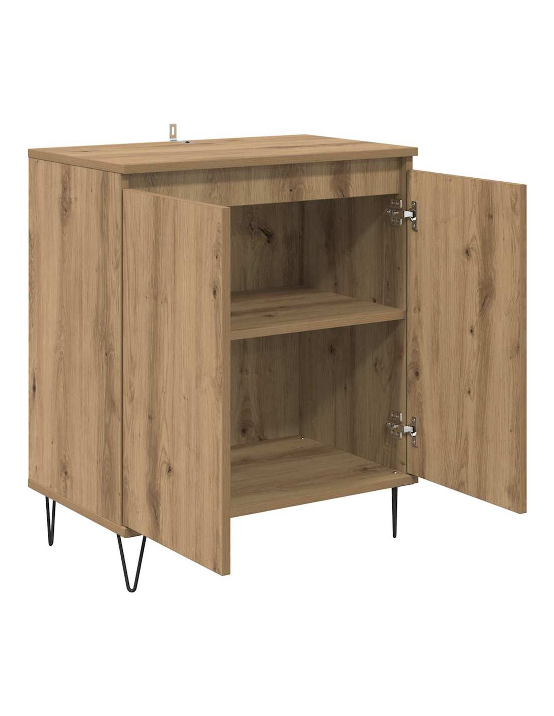 - Componenti funzionali: Le porte a cerniera permettono un accesso facile e veloce a tutto ciò che hai riposto, rendendo la vita di tutti i giorni più comoda. I ripiani interni sono pronti a sostenere vari oggetti, da stoviglie a oggetti personali. Le gambe in ferro offrono un supporto stabile e un tocco di stile industriale.