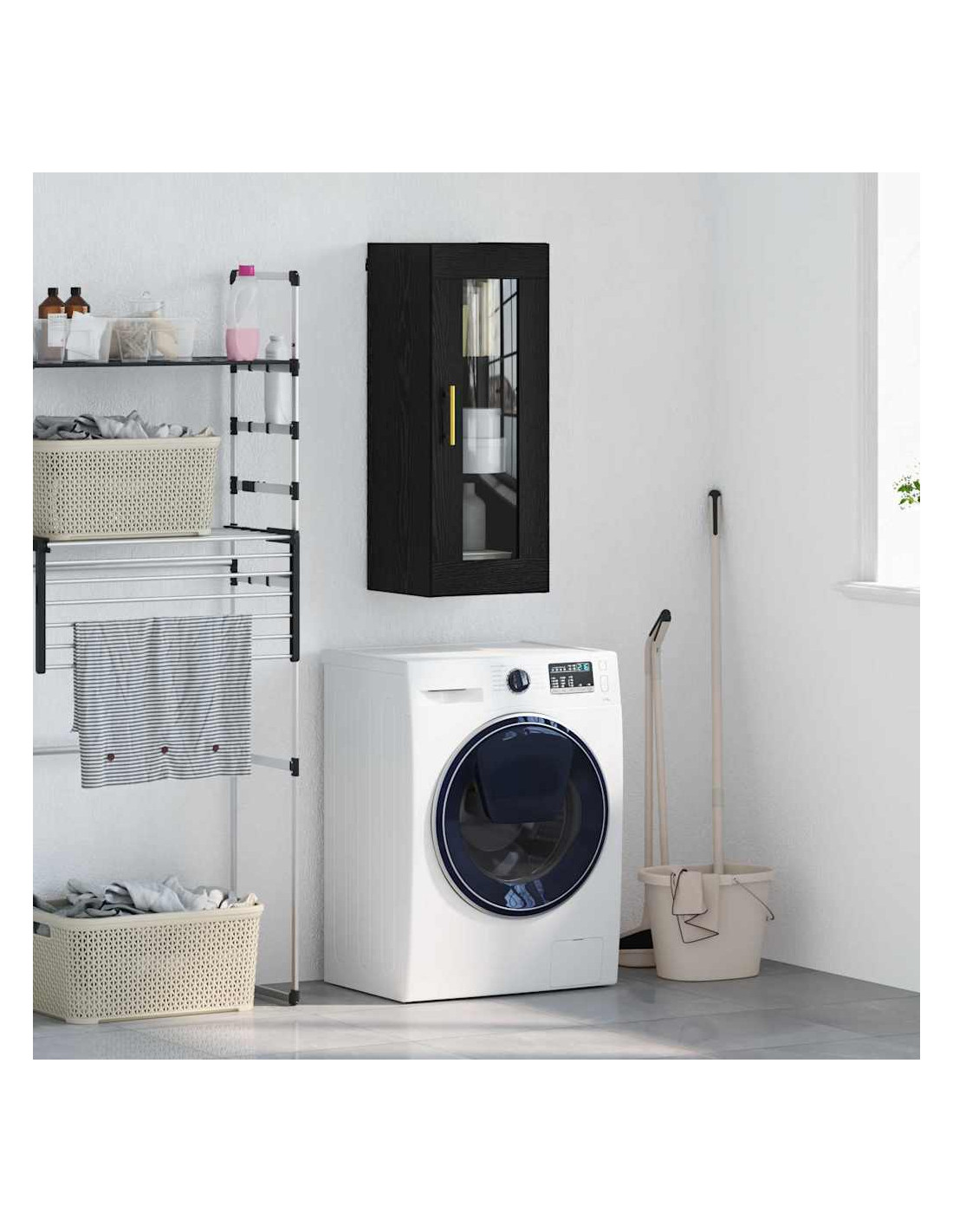 - Materiali: Costruito in legno ingegnerizzato e vetro, l'armadietto è bello e resistente. Il legno è robusto, assicurando solidità, mentre il vetro aggiunge un tocco elegante, mostrando cosa c'è dentro.