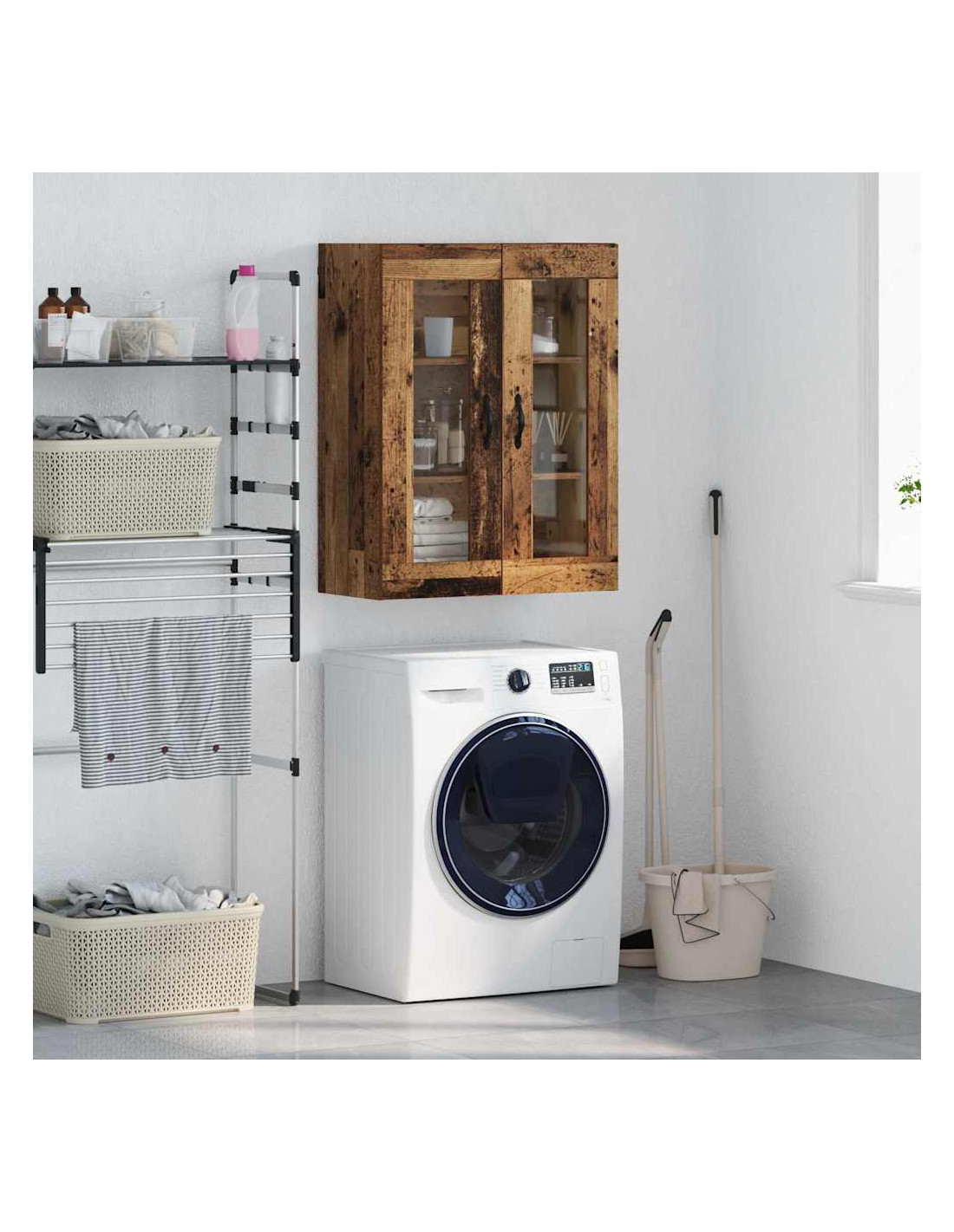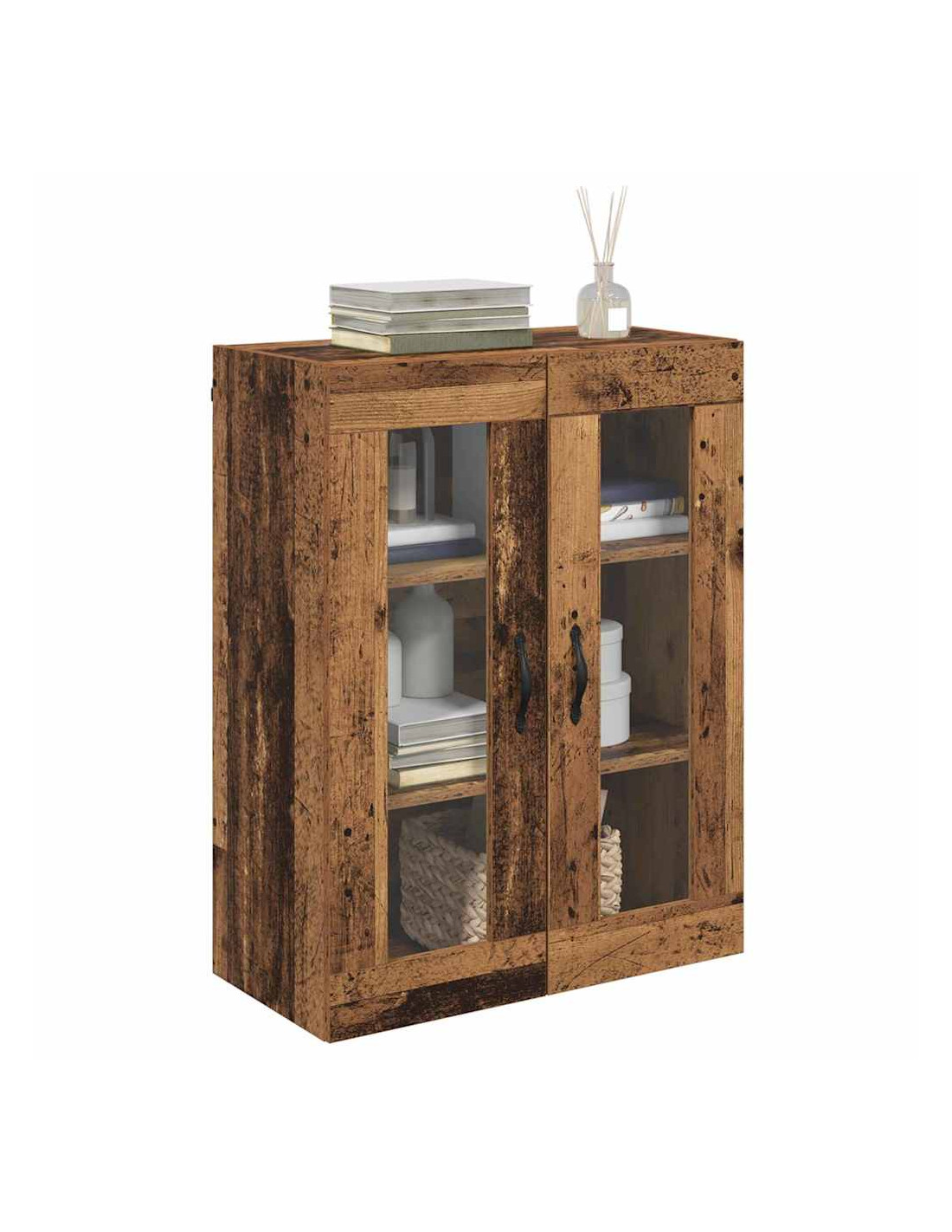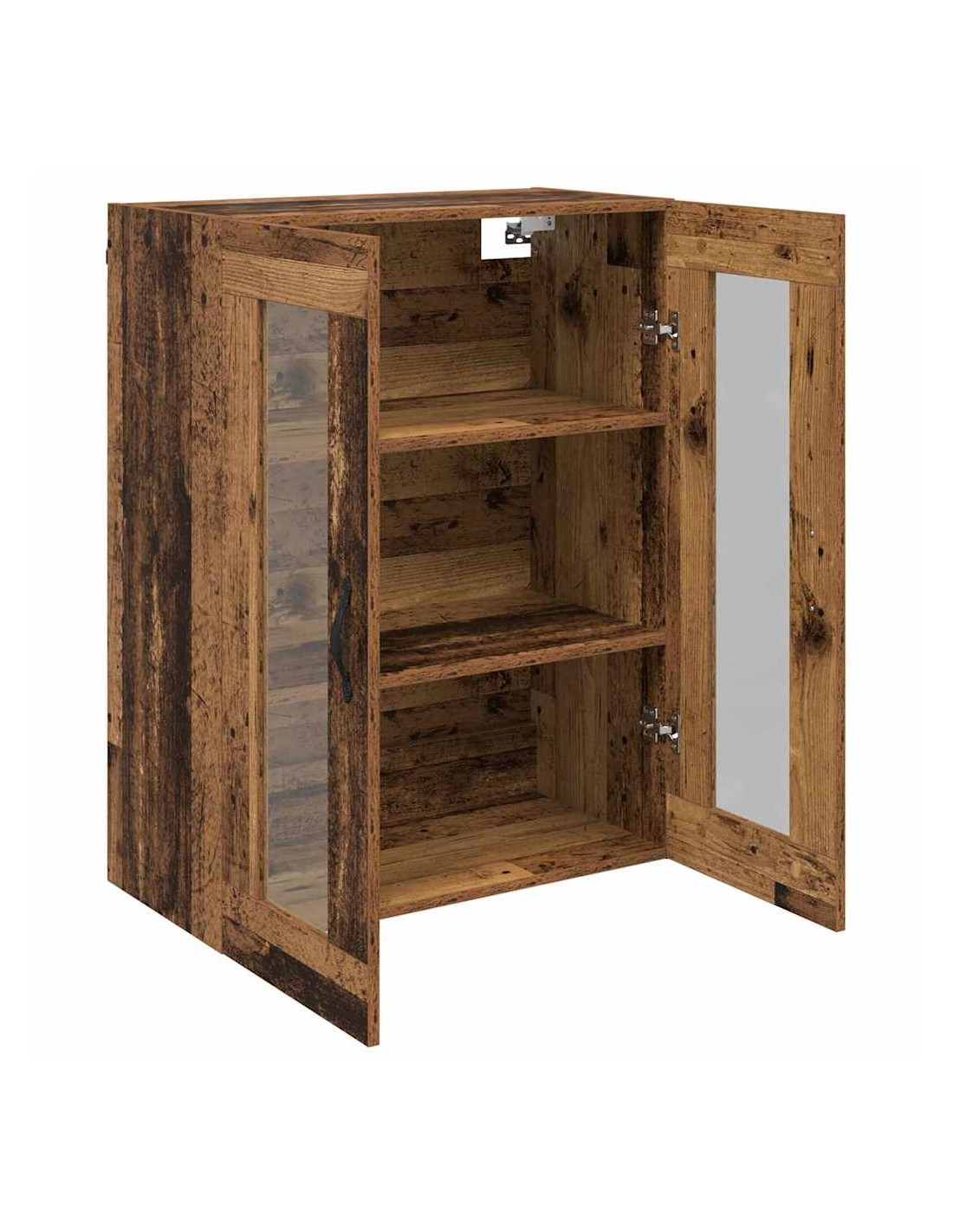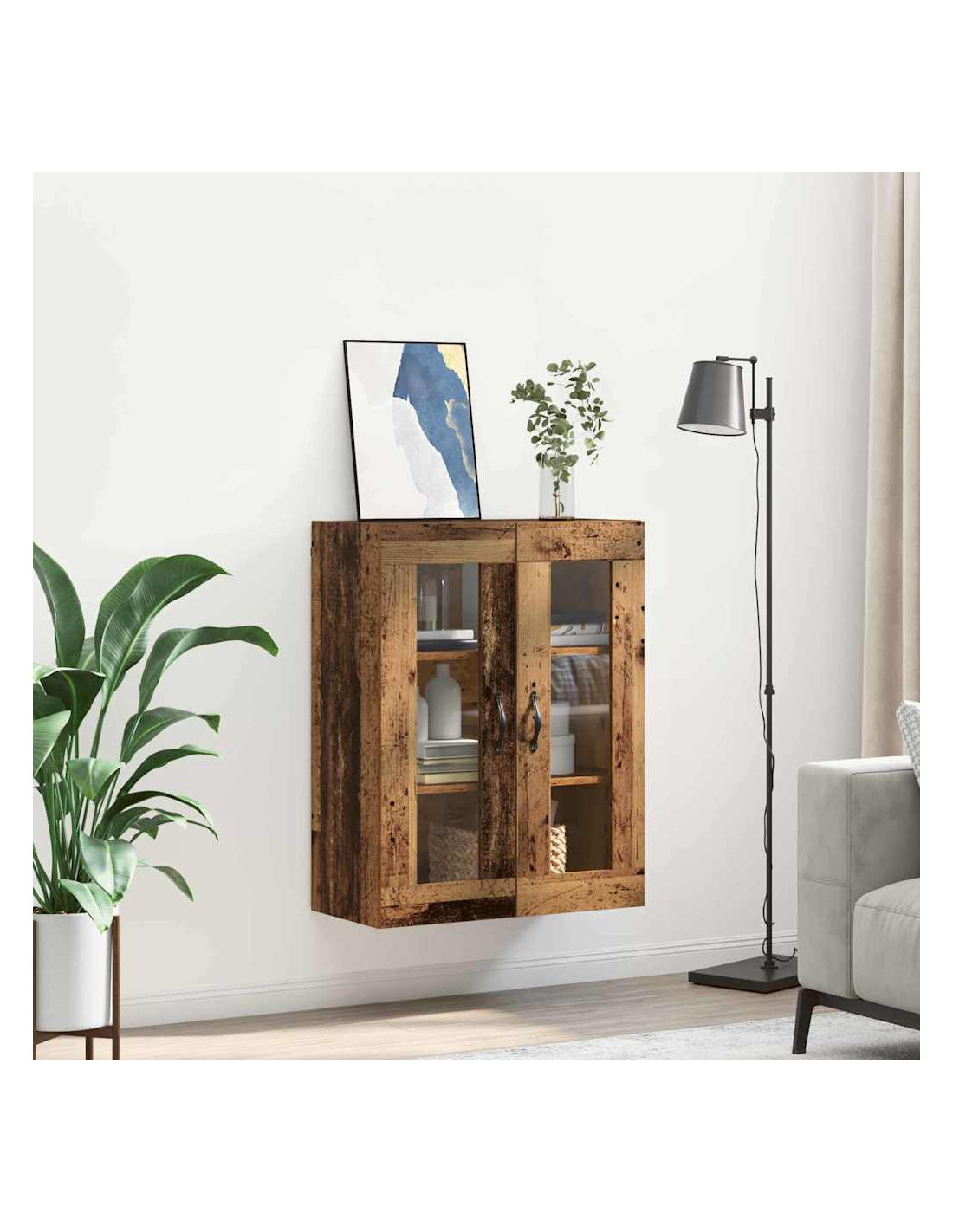 - Componenti inclusi: È dotato di una maniglia in metallo elegante per una facile apertura, ed è accompagnato da mensole a parete in legno ingegnerizzato che aumentano lo spazio disponibile. Le porte in vetro offrono un aspetto raffinato e permettono di mostrare gli oggetti dentro.