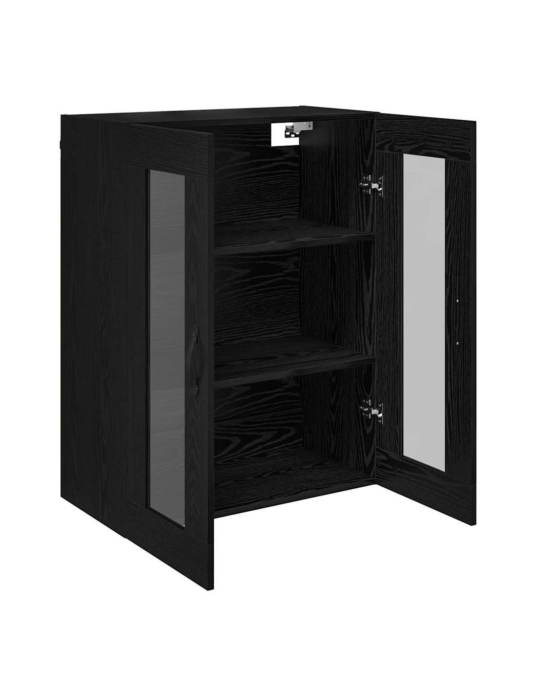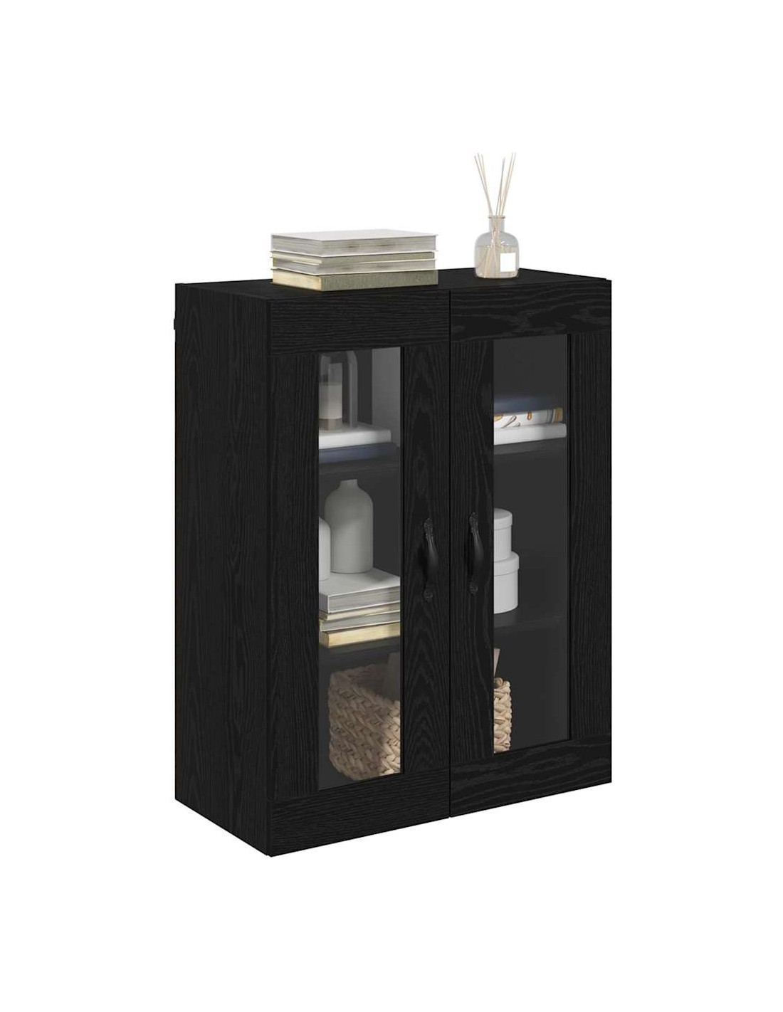 - Componenti inclusi: È dotato di una maniglia in metallo elegante per una facile apertura, ed è accompagnato da mensole a parete in legno ingegnerizzato che aumentano lo spazio disponibile. Le porte in vetro offrono un aspetto raffinato e permettono di mostrare gli oggetti dentro.