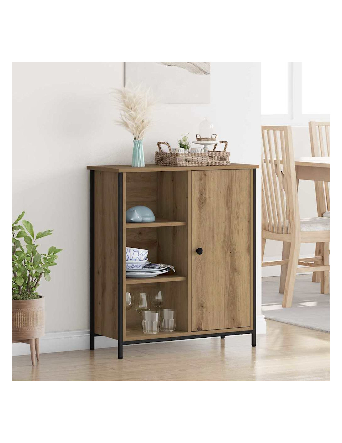 - Materiali: Realizzata in legno ingegnerizzato, questa credenza è resistente e ha un aspetto accattivante. La finitura liscia ne esalta lo stile, promettendo durata e facile manutenzione, contribuendo al suo look elegante.