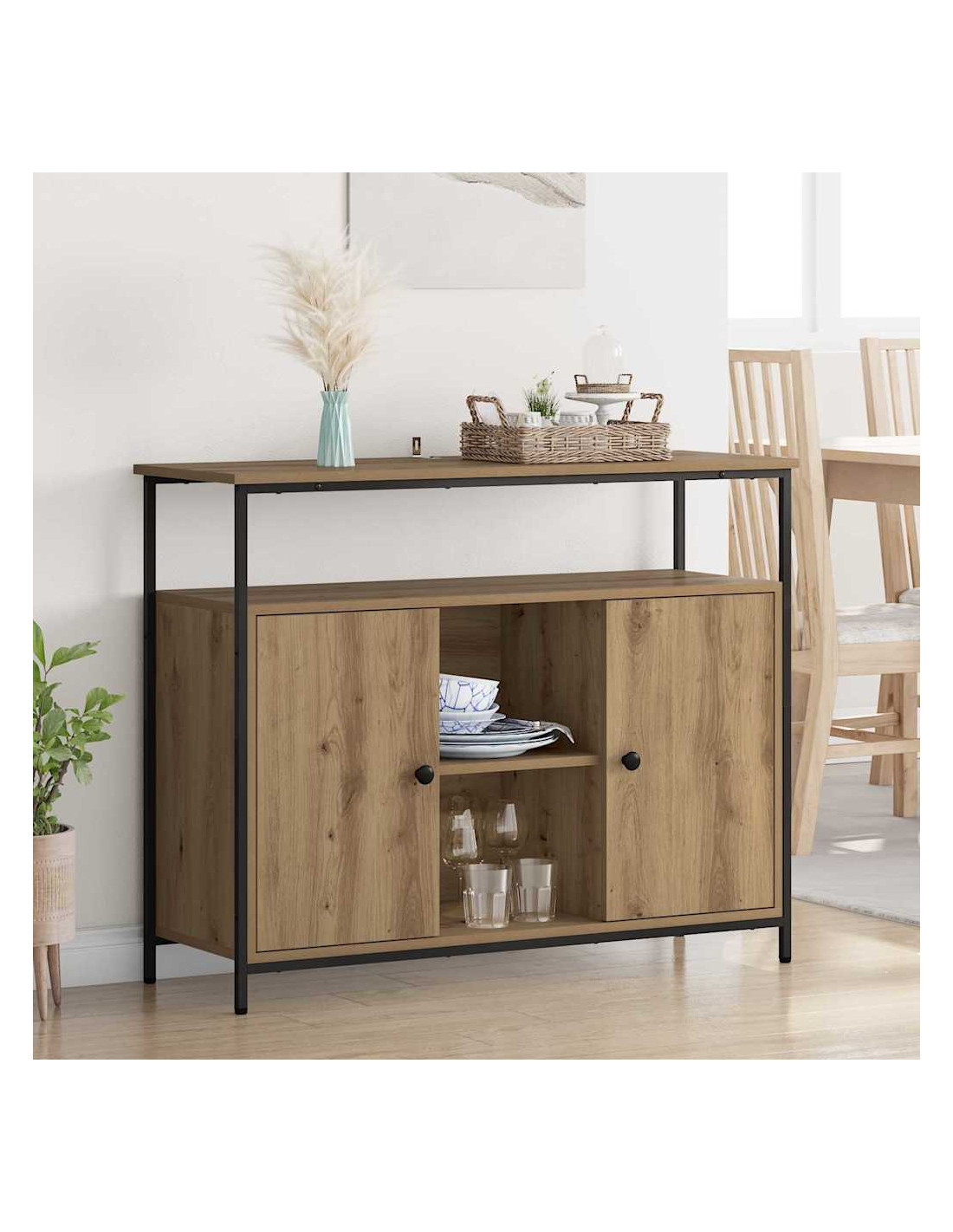 - Componenti Inclusi: Con mensole in legno ingegnerizzato, la credenza offre soluzioni di stoccaggio pratiche. Le porte a cerniera si aprono e chiudono facilmente, dando accesso ai tuoi oggetti. Ha anche robusti piedi a palo che la rendono stabile e prevenendo movimenti indesiderati.