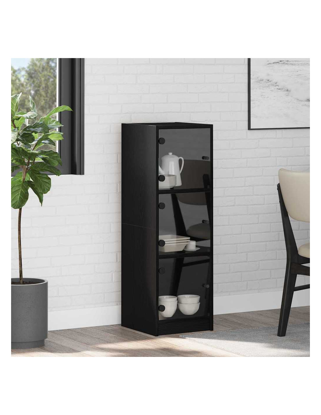 - Accenti in vetro eleganti: Le porte in vetro trasparente conferiscono un tocco chic a questo highboard, permettendo di vedere cosa c'è dentro mantenendo un look ordinato. Questi dettagli in vetro rendono l'unità un punto focale della stanza, in armonia con gli arredi.