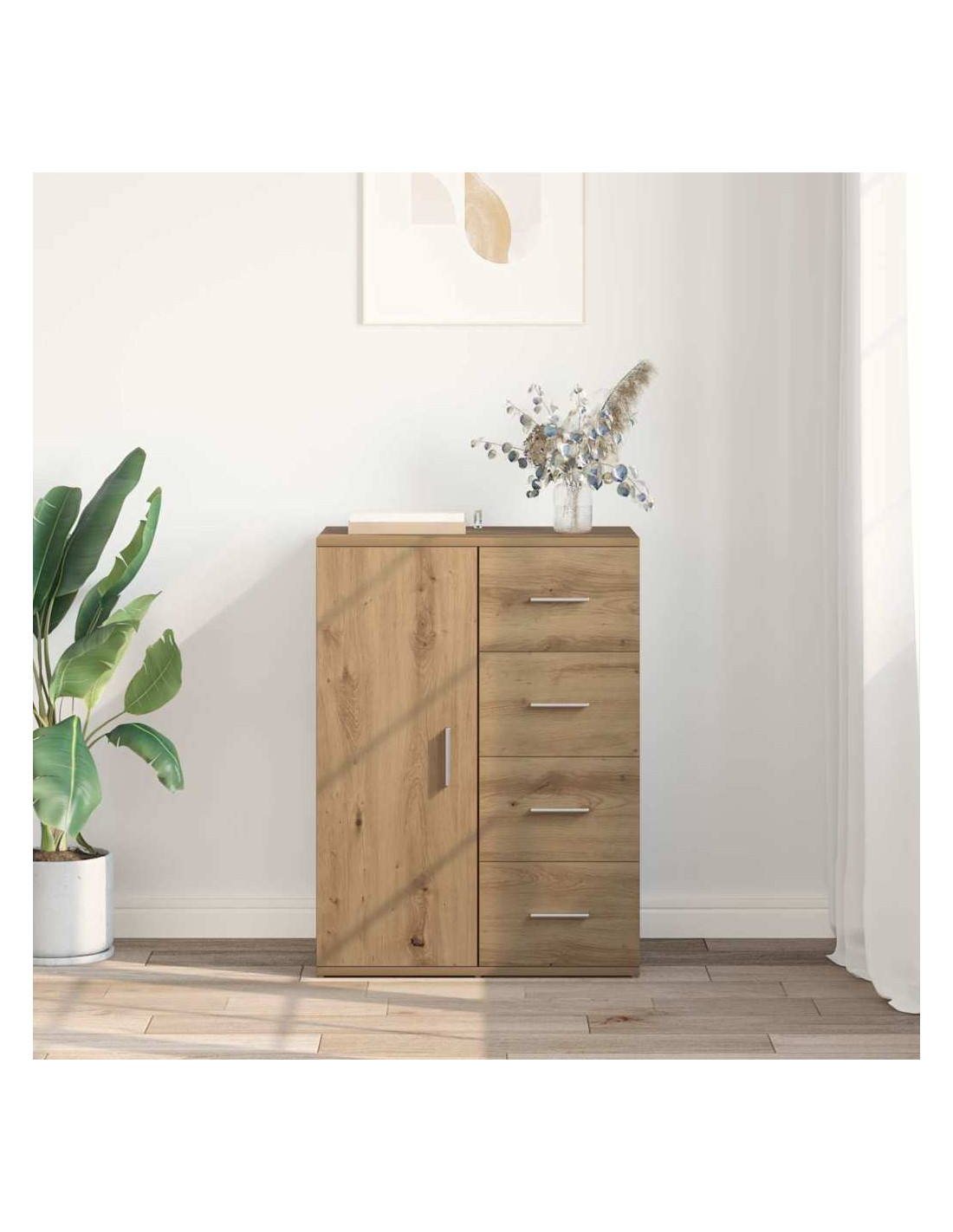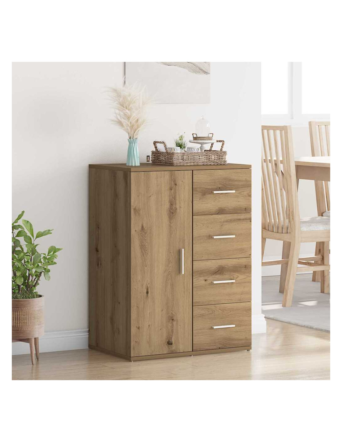 - materiali: Questo mobile in legno ingegnerizzato non è solo bello, ma anche molto resistente. I materiali scelti garantiscono che duri a lungo e mantenga il suo aspetto nel tempo, armonizzando con diversi stili decorativi.
