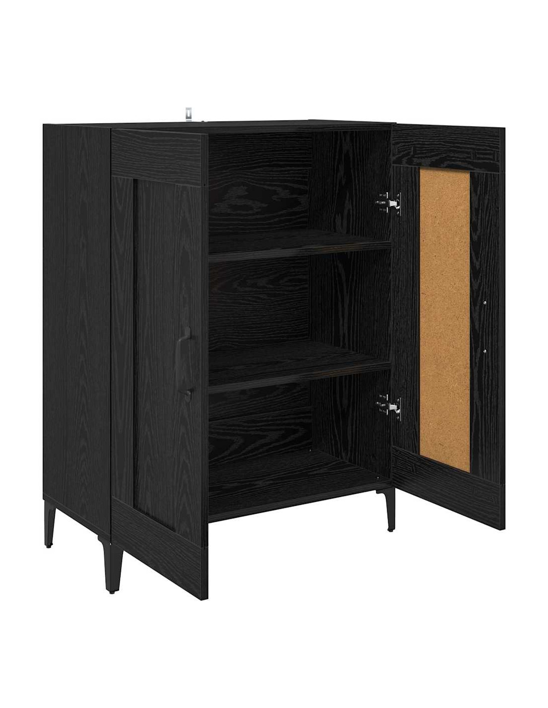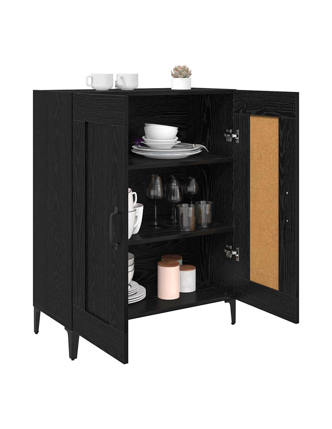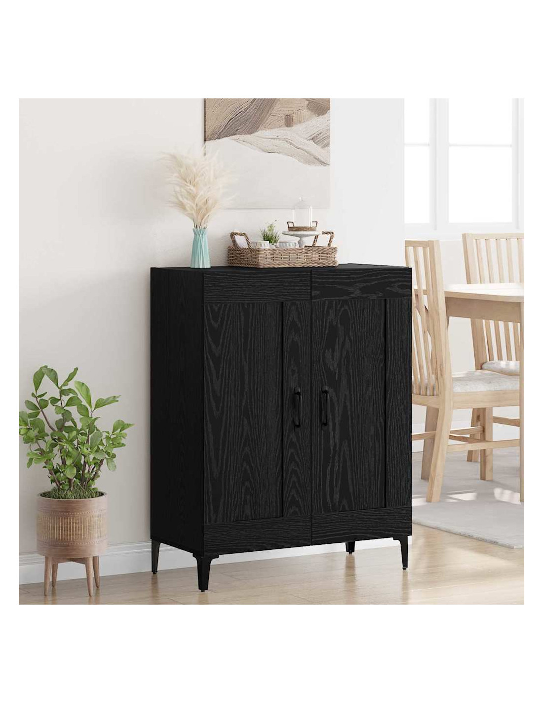 - Maniglie e gambe in metallo: Le maniglie e le gambe in metallo rendono il sideboard robusto e funzionale. Le maniglie a D permettono di prendere facilmente gli oggetti, mentre le gambe garantiscono stabilità.