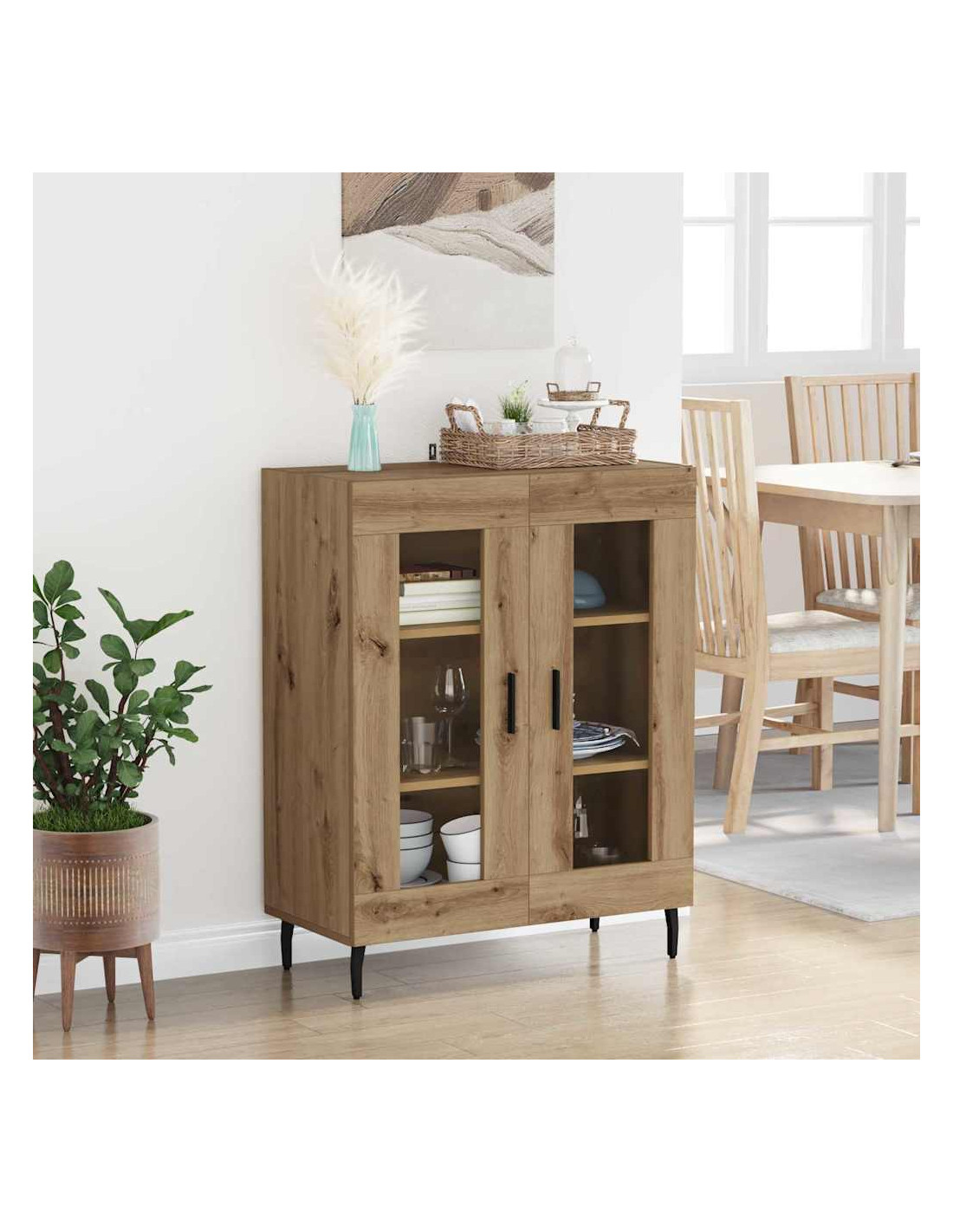 - Costruzione in legno ingegnerizzato: Questo sideboard è fatto di legno ingegnerizzato robusto, il che significa che è resistente per l'uso quotidiano e mantiene il suo aspetto elegante nel tempo.