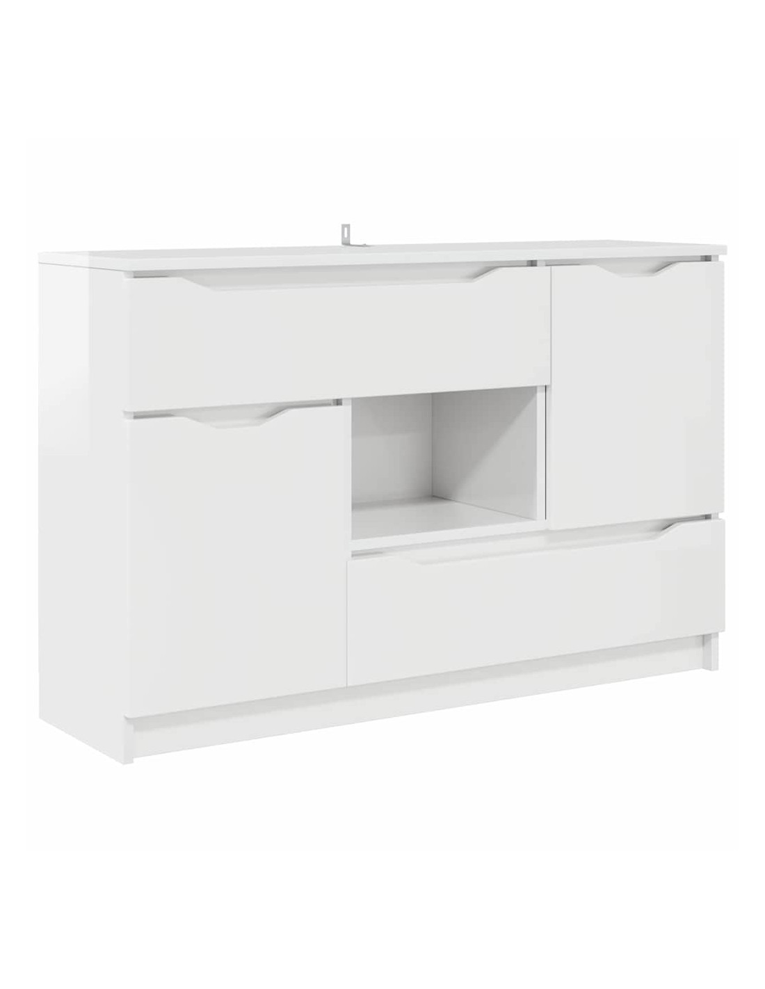 - Legno ingegnerizzato: La credenza è fatta in legno ingegnerizzato, che la rende sia robusta che elegante. Questo materiale è conosciuto per la sua durabilità e resistenza all'uso quotidiano, mantenendo una finitura lucida. Optare per il legno ingegnerizzato assicura anche una superficie liscia e uniforme, migliorando l'aspetto e la funzionalità.