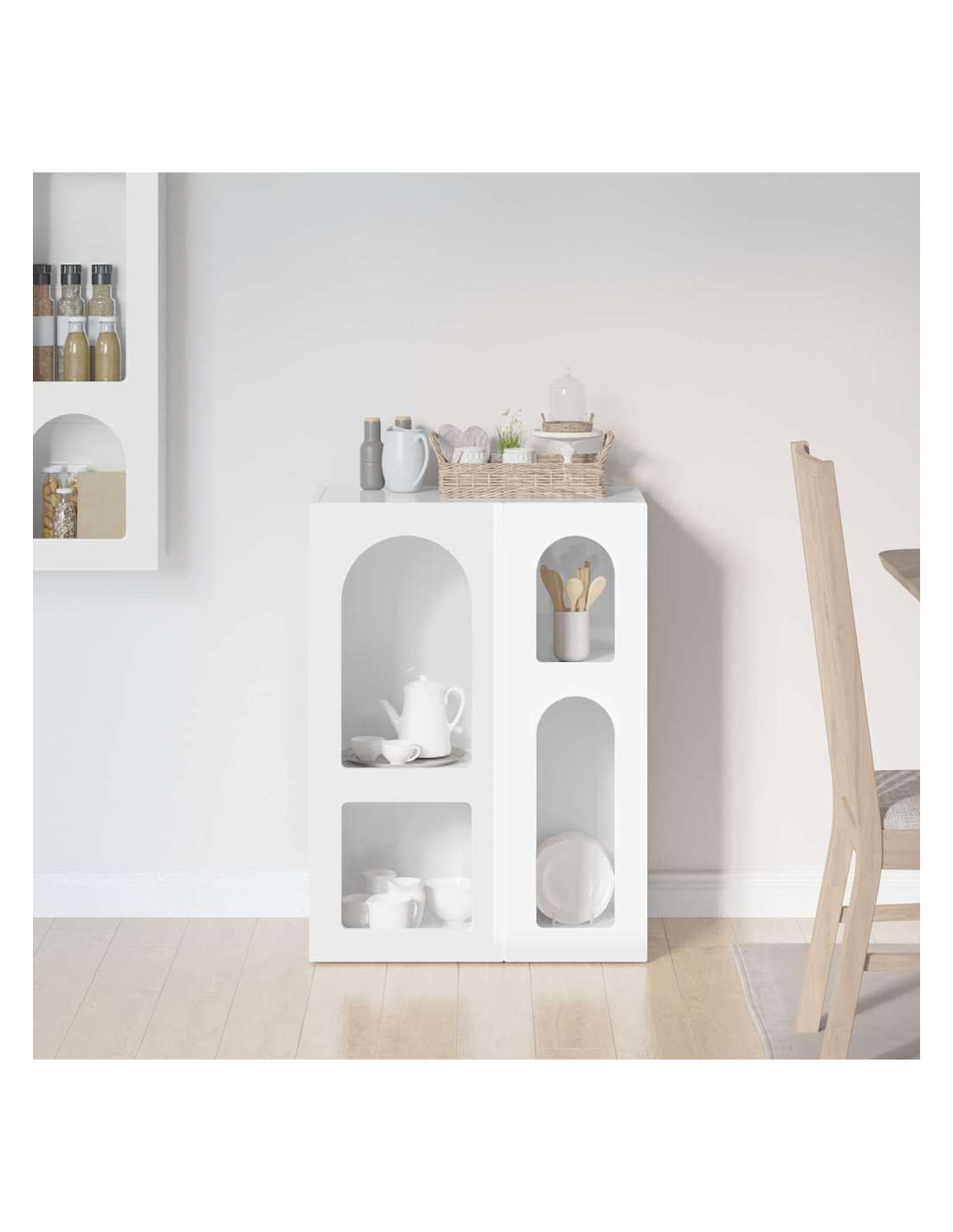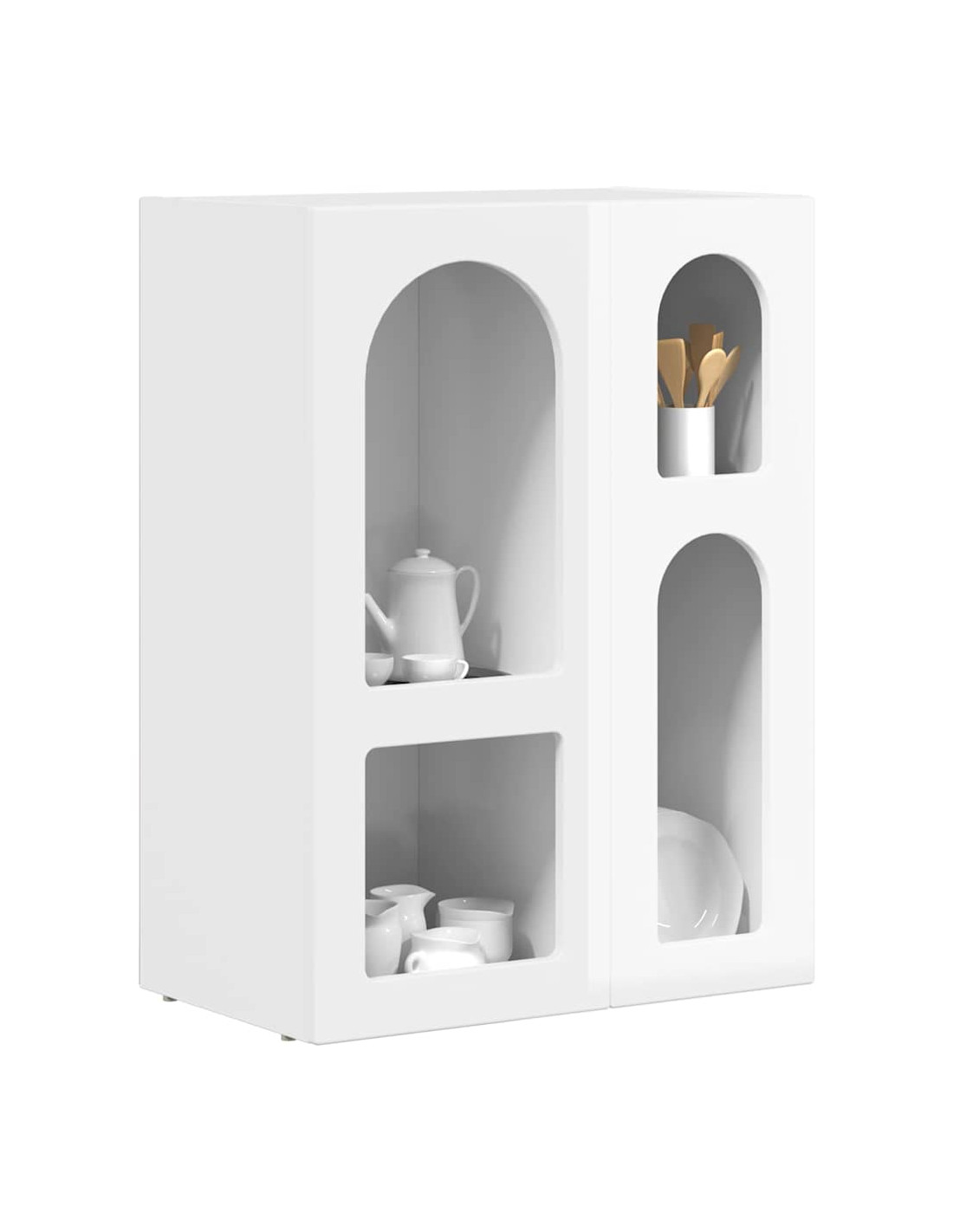 - Ripiani ampi: I ripiani in legno ingegnerizzato sono progettati per reggere un bel po'di peso. Puoi riporre di tutto, dalle stoviglie più pesanti a piccoli oggetti decorativi, così il tuo spazio resta ordinato.