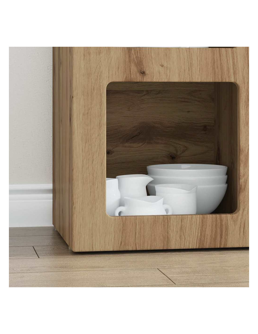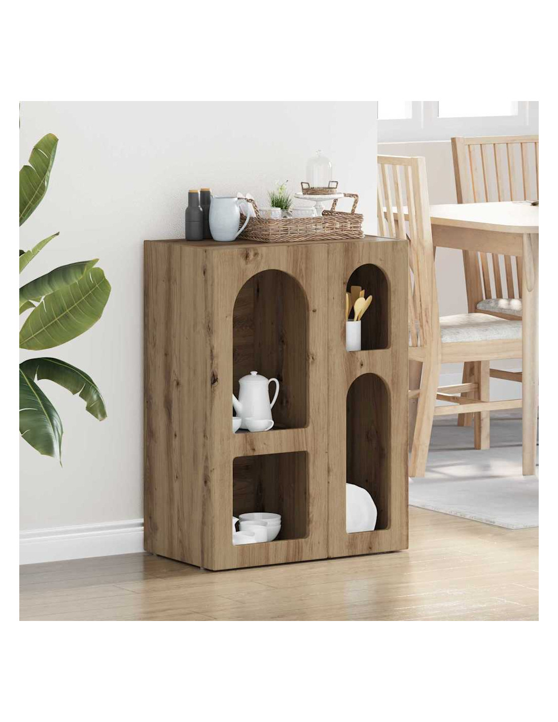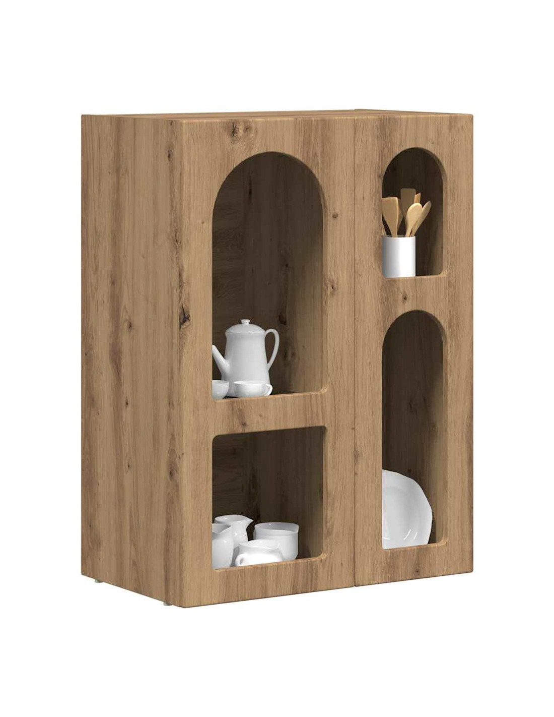 - Ripiani ampi: I ripiani in legno ingegnerizzato sono progettati per reggere un bel po'di peso. Puoi riporre di tutto, dalle stoviglie più pesanti a piccoli oggetti decorativi, così il tuo spazio resta ordinato.