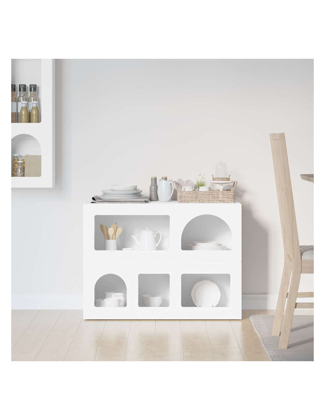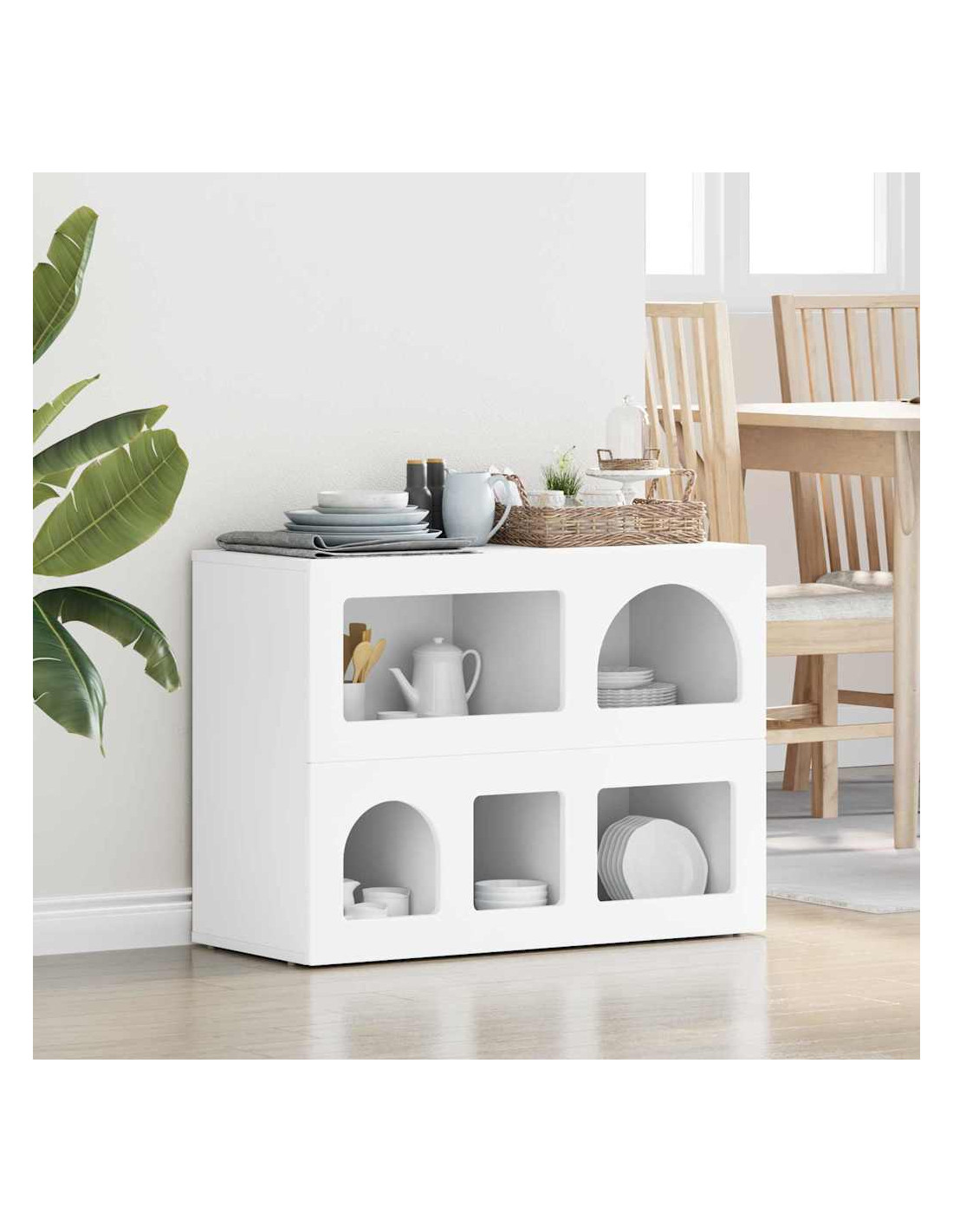 - Caratteristiche /Funzione /Design: La sua versatilità la rende ideale per diverse funzioni, da buffet a console. È robusta e può contenere vari oggetti, garantendo sia stoccaggio che esposizione. Combina semplicità e funzionalità, rispondendo alle esigenze moderne.