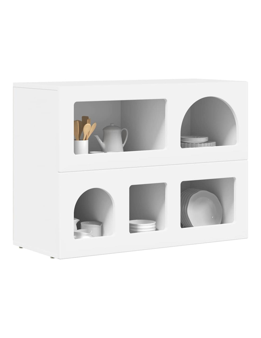 - Componenti inclusi: È dotata di diversi ripiani, perfetti per organizzare stoviglie, libri o decorazioni. Questi ripiani sono flessibili per riporre ciò che vuoi, rendendo facile accedere e vedere gli oggetti conservati, migliorando la praticità.