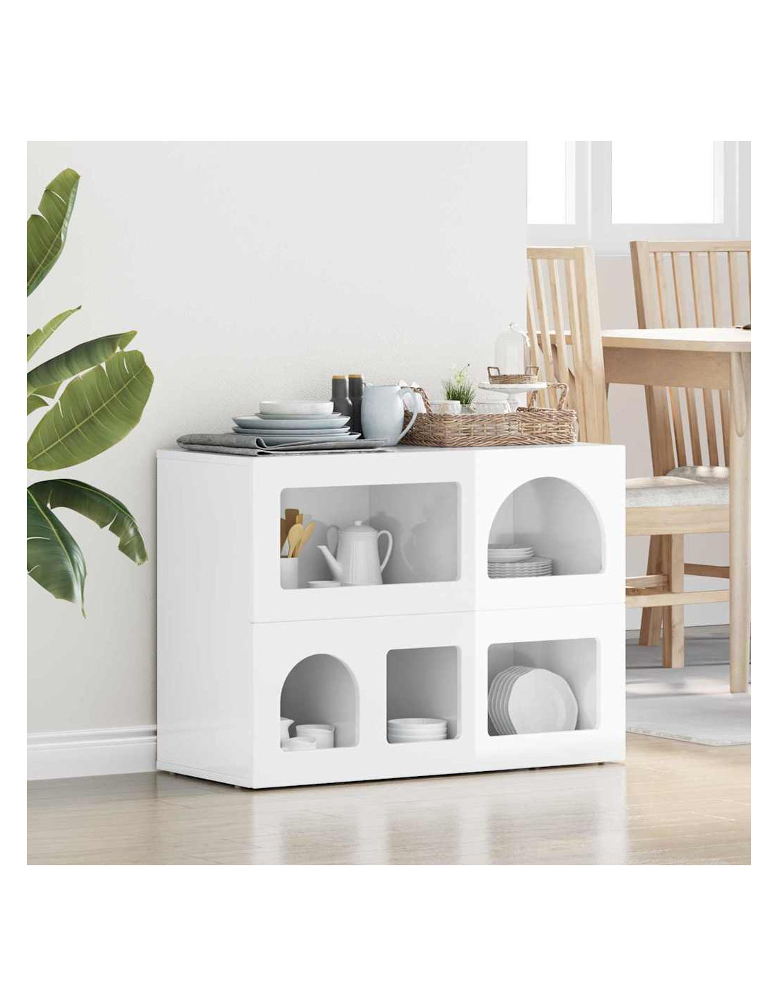 - Caratteristiche /Funzione /Design: La sua versatilità la rende ideale per diverse funzioni, da buffet a console. È robusta e può contenere vari oggetti, garantendo sia stoccaggio che esposizione. Combina semplicità e funzionalità, rispondendo alle esigenze moderne.